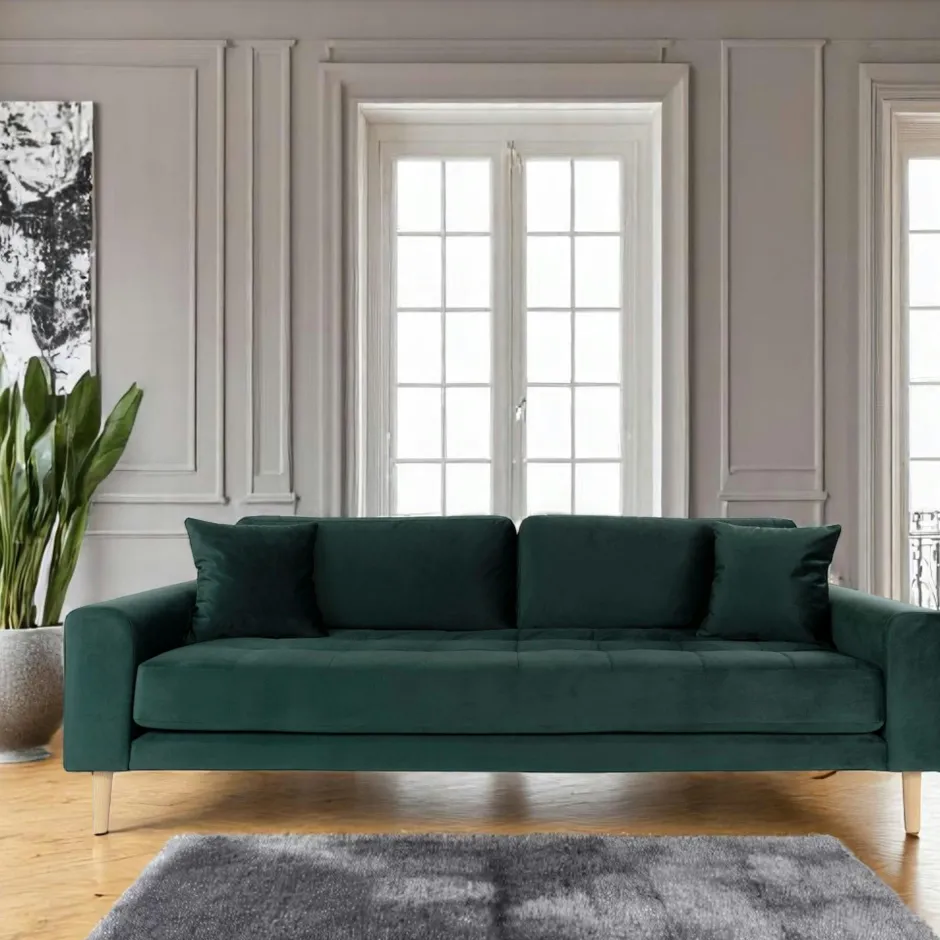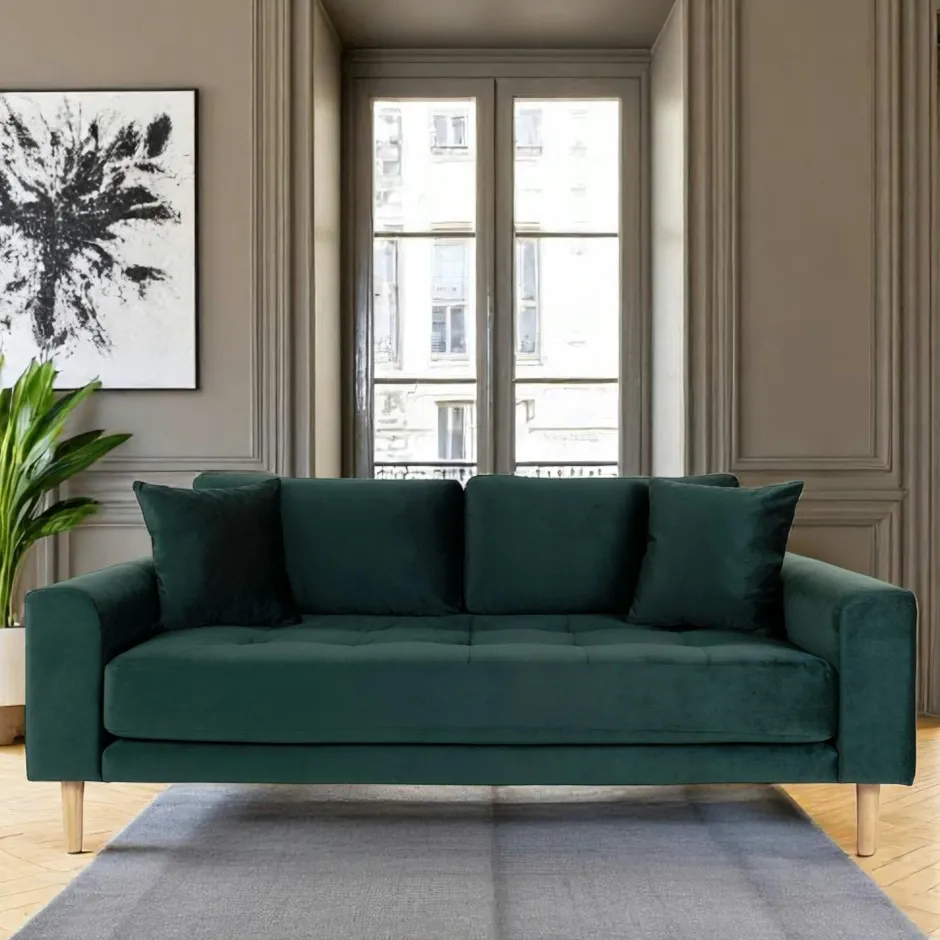 DOVER Canapés En Tissu|Canapé 2 places vert en velours capitonné