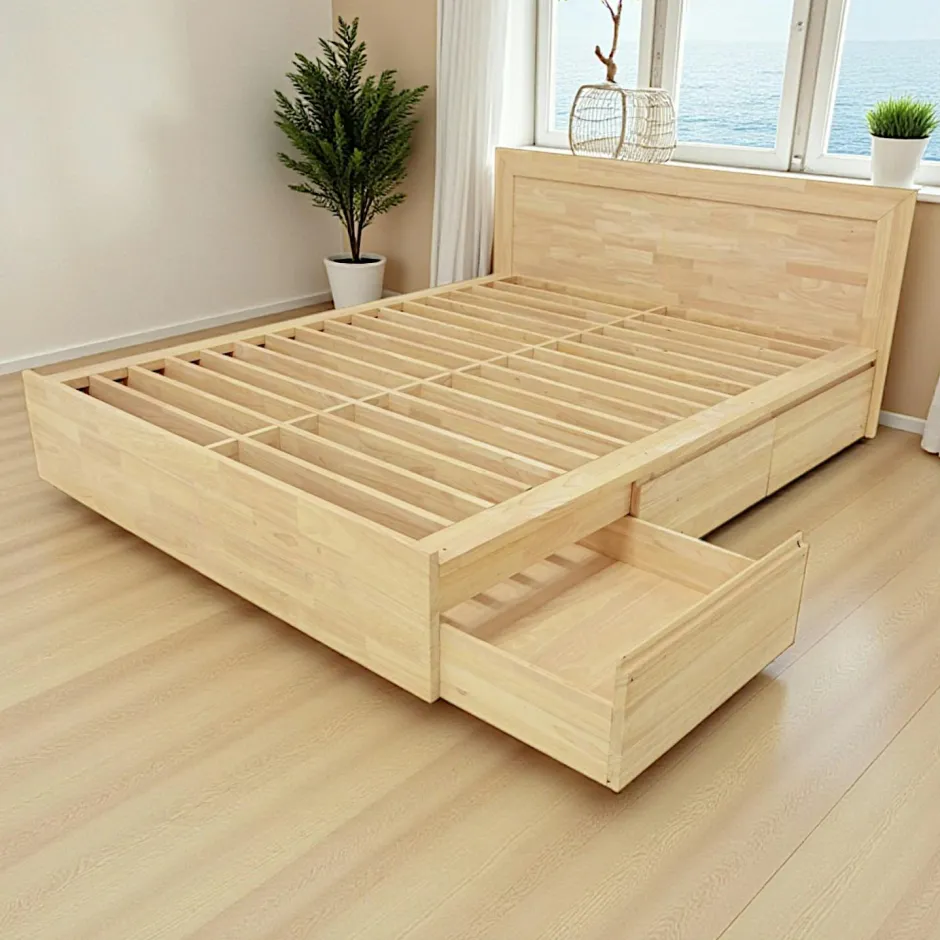 Baltic Lits Scandinaves|Lits 2 Places|Lit 2 places Hévéa avec 6 tiroirs pour couchage 180×200 188x205x80cm
