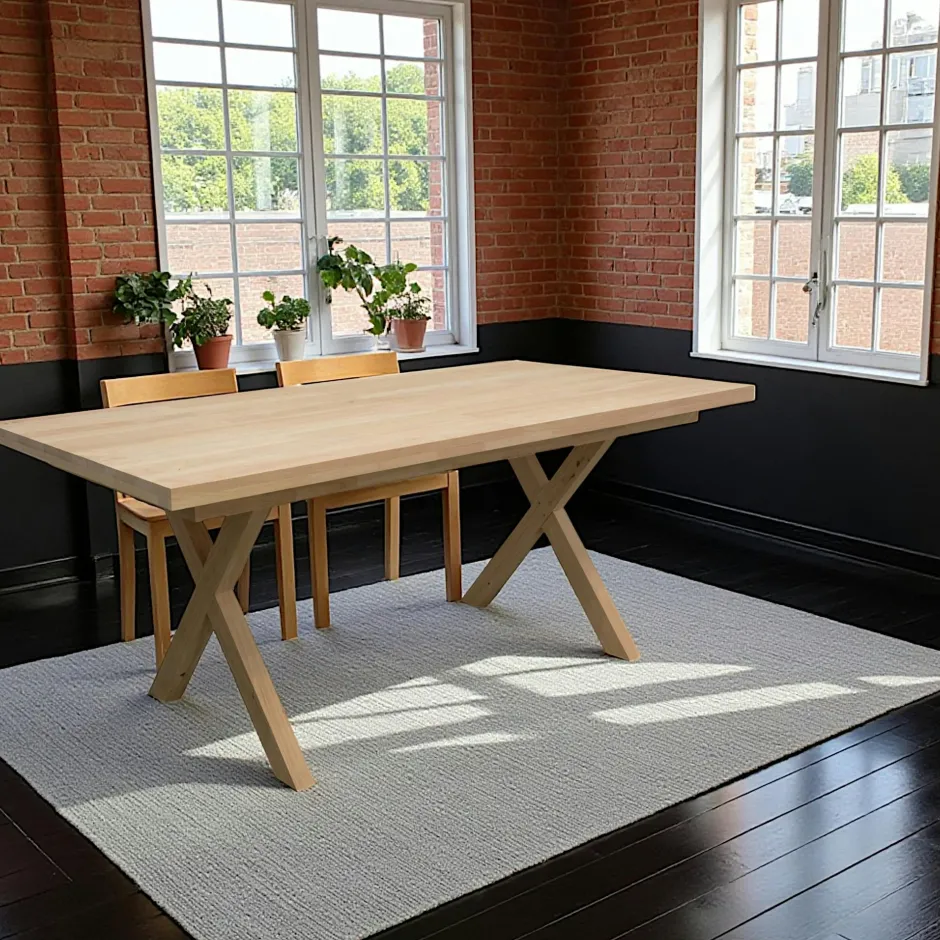 Baltic Tables À Manger Scandinaves|Tables À Manger En Bois|Table de Repas Hévéa avec pieds en croix 180x90x76cm