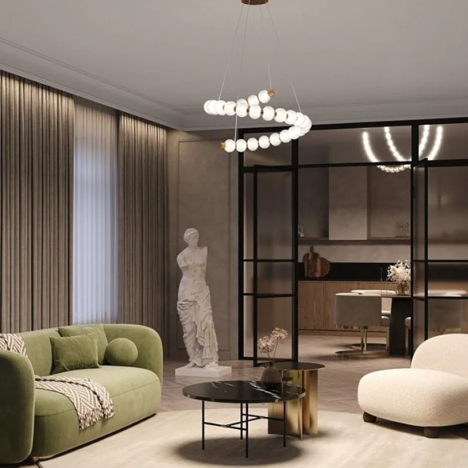 BELLA Suspensions / Lustres|Suspension salon en verre – perles ciselées spirale