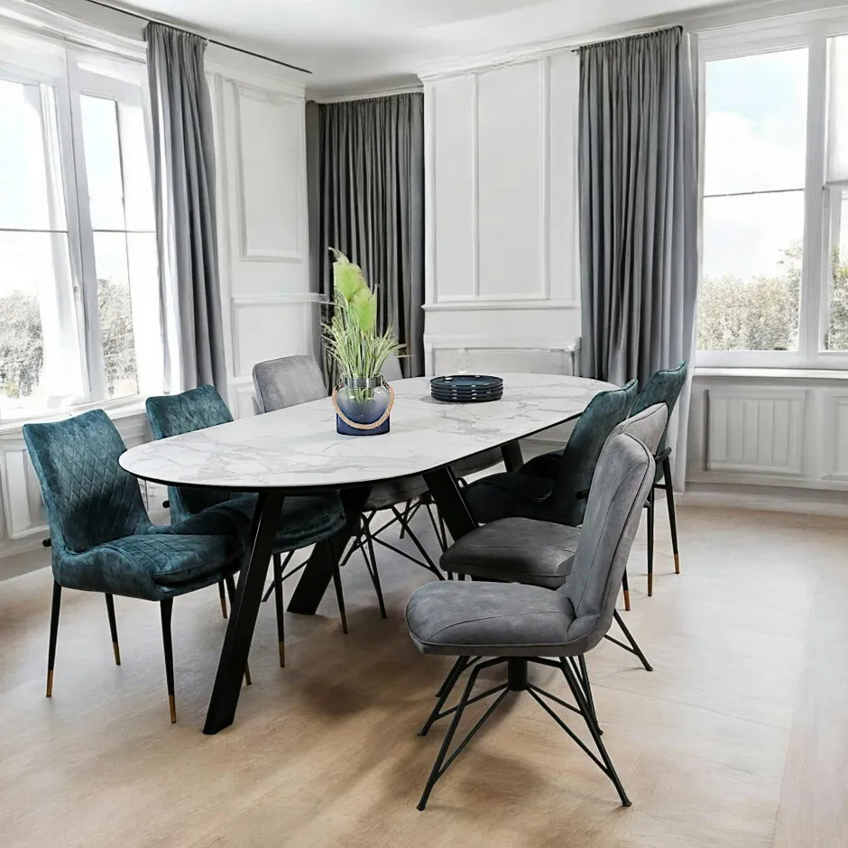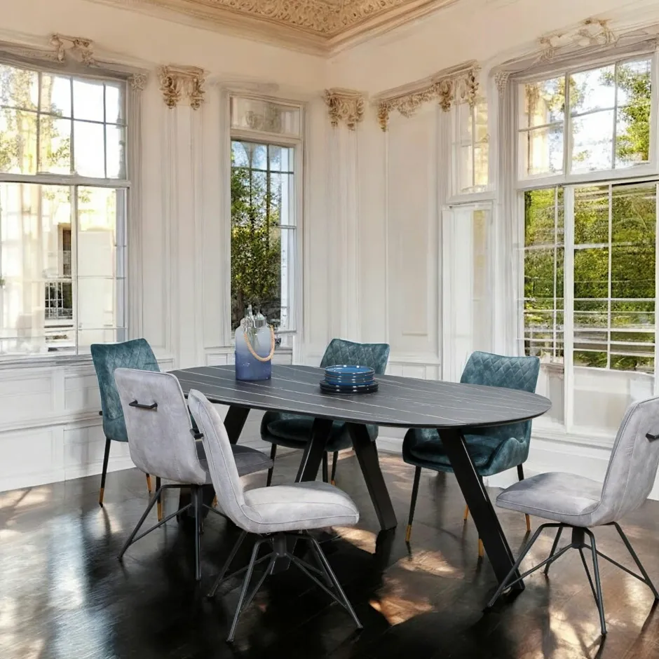 BERGAME Tables À Manger Rectangulaires|Tables À Manger En Céramique|Table à manger en céramique noire mate 200 cm