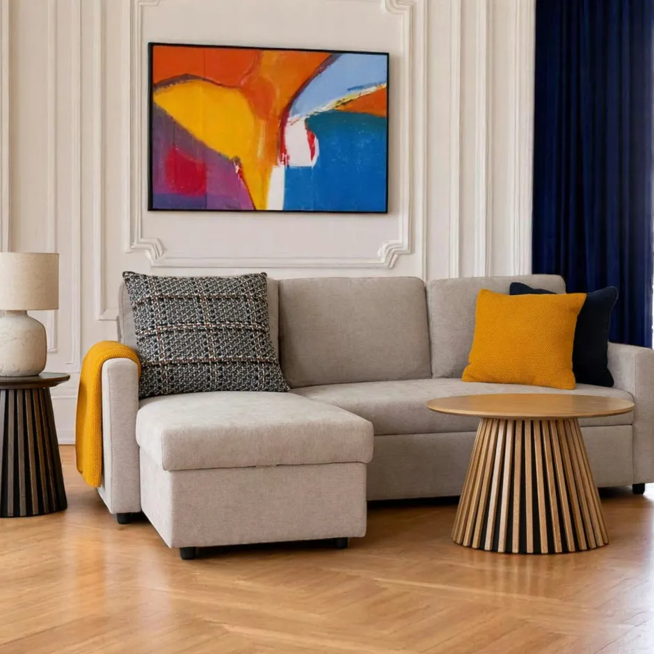 BERLIN Canapés D’Angle|Canapés Convertibles|Canapé-lit 3 places beige avec méridienne coffre