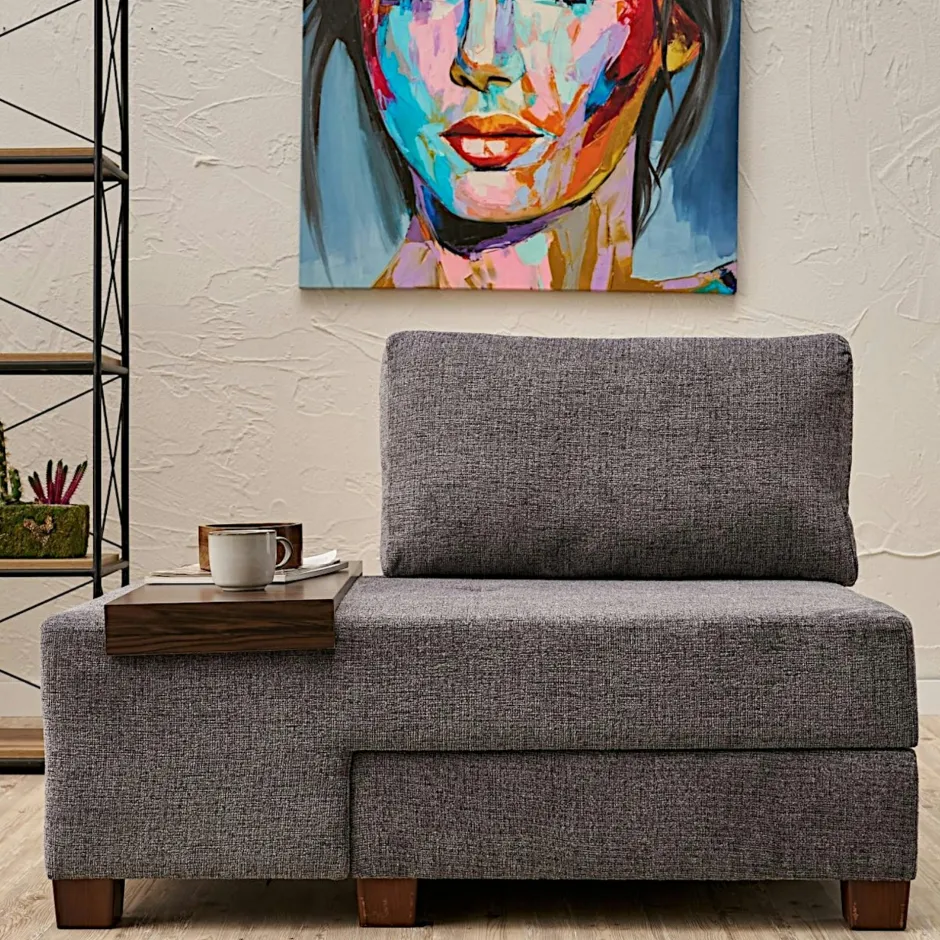 BUZON Fauteuils En Tissu|Fauteuils Convertibles|Fauteuil convertible gris chenille, plateau droit