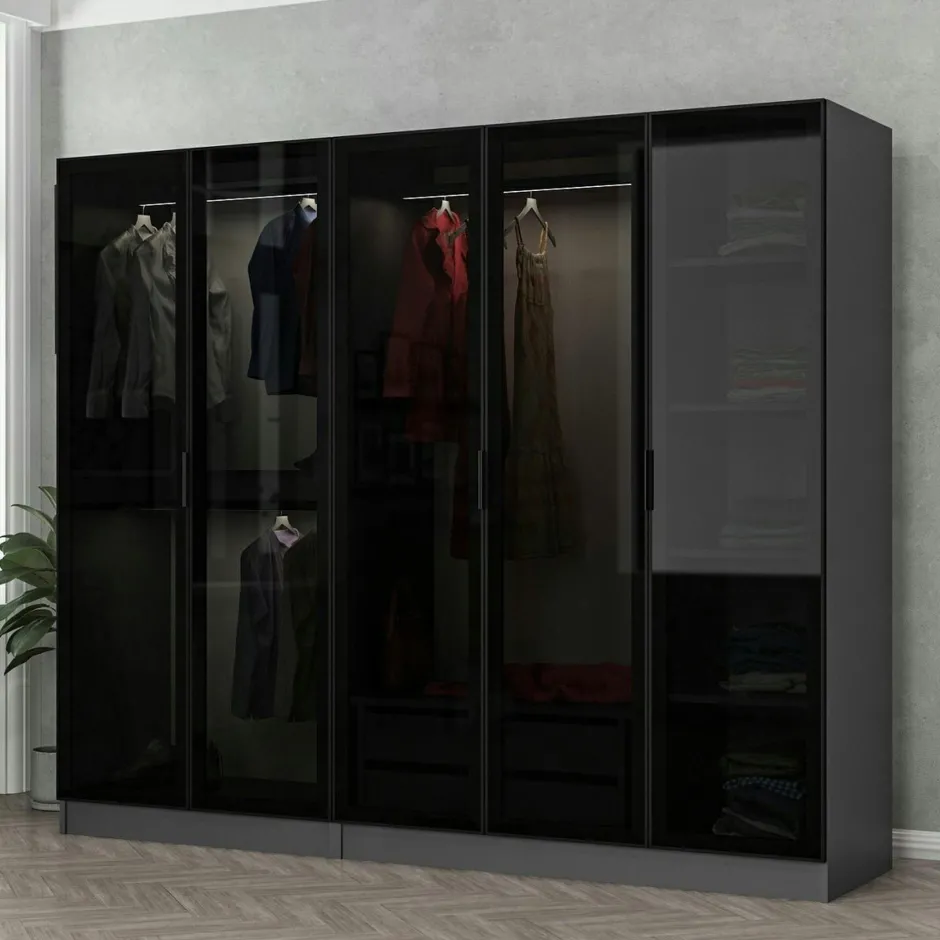 BYRON Armoires En Bois|Meubles De Chambre·Dressings|Armoire dressing design gris 5 portes verre H 190 cm
