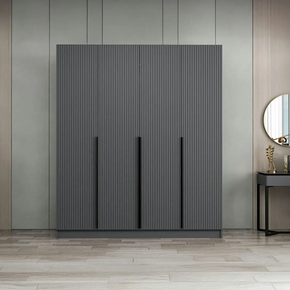 BYRON Armoires En Bois|Meubles De Chambre·Dressings|Armoire penderie design gris rainuré H 210 cm