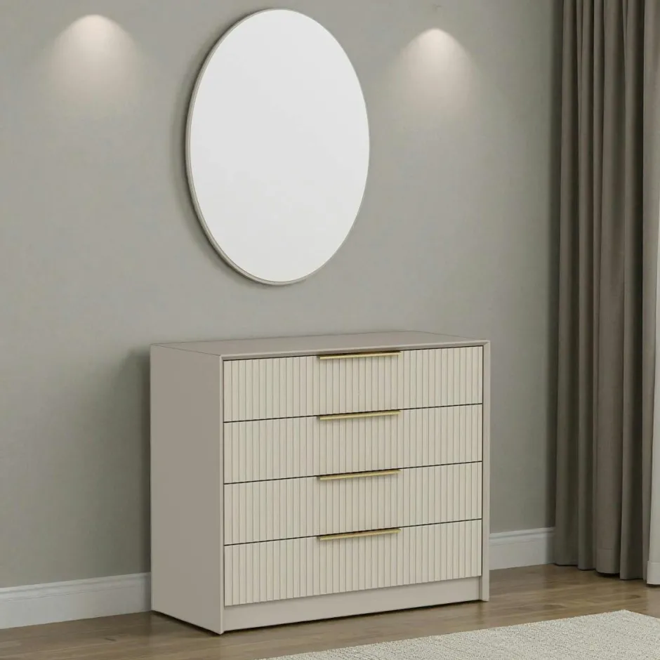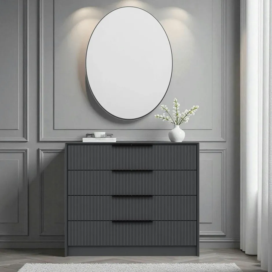 BYRON Commodes En Bois|Commode moderne grise 4 tiroirs, miroir assorti