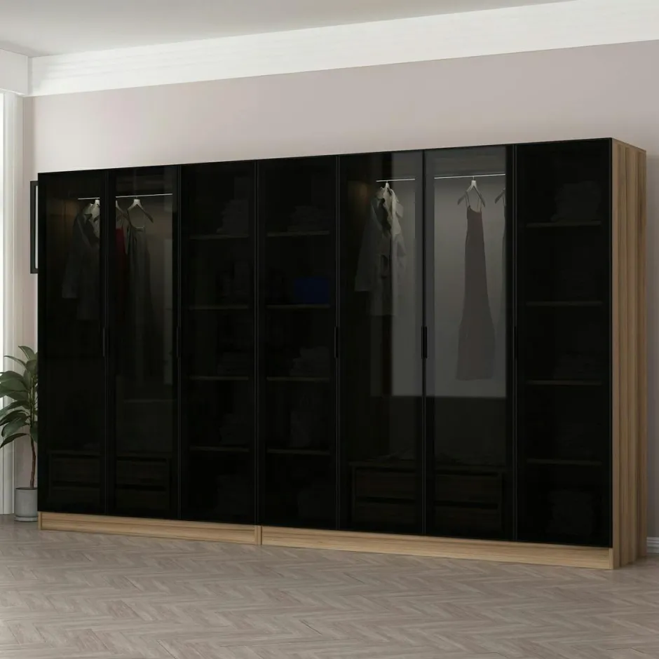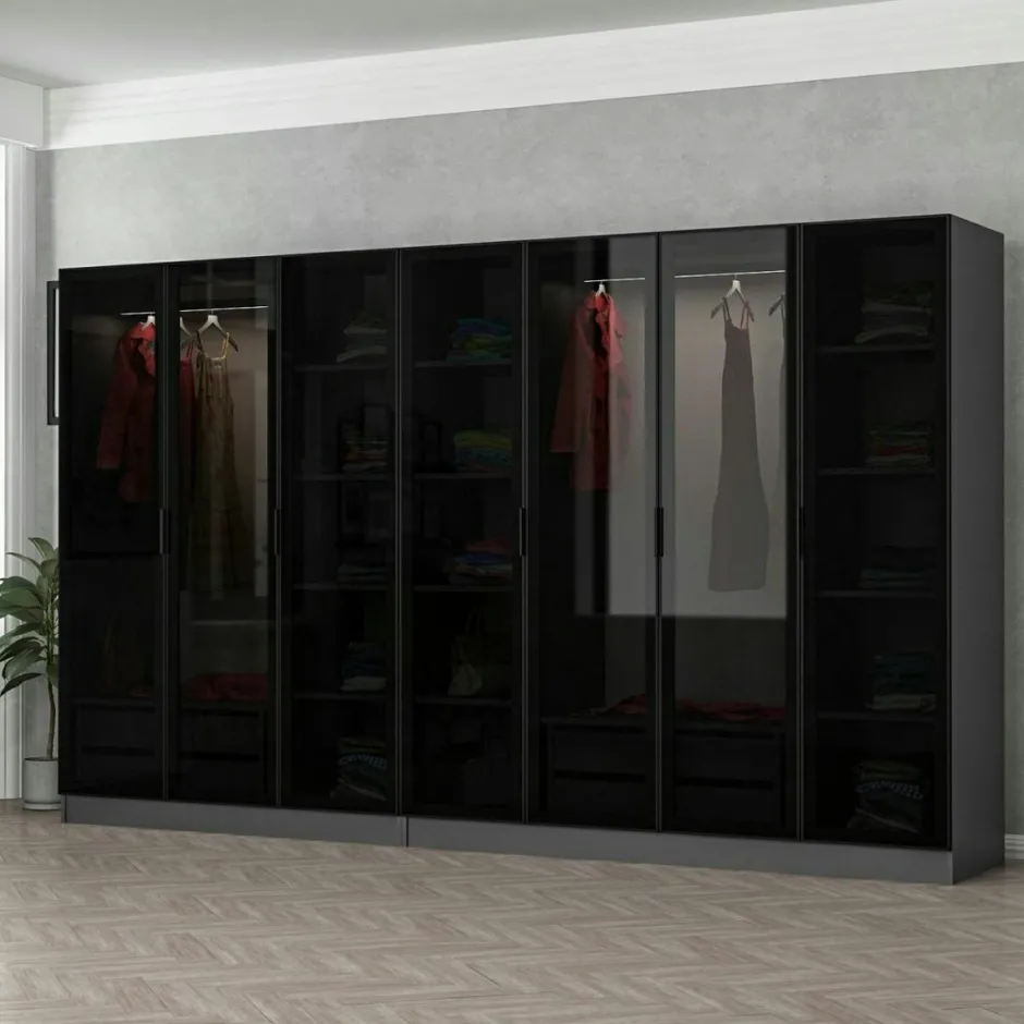 BYRON Meubles De Chambre·Dressings|Armoires En Bois|Dressing XXL 5 penderies, blanc & verre noir 190 cm