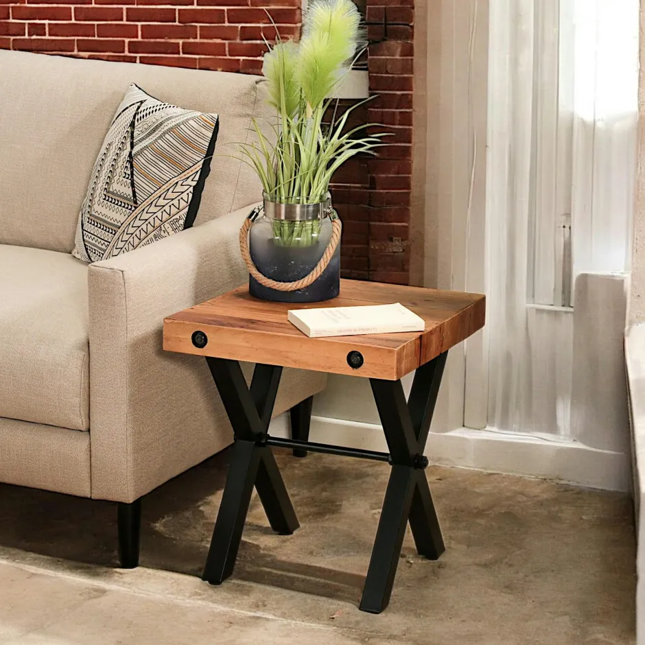 CALGARY Bouts De Canapé En Métal|Bouts De Canapé En Bois|Bout de canapé industriel en bois recyclé