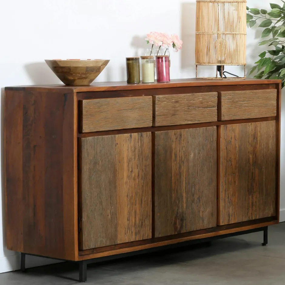 Tessa Buffets En Bois|Buffets En Bois|Buffet Enfilade Hévéa 4 portes, 4 tiroirs 200x50x100cm