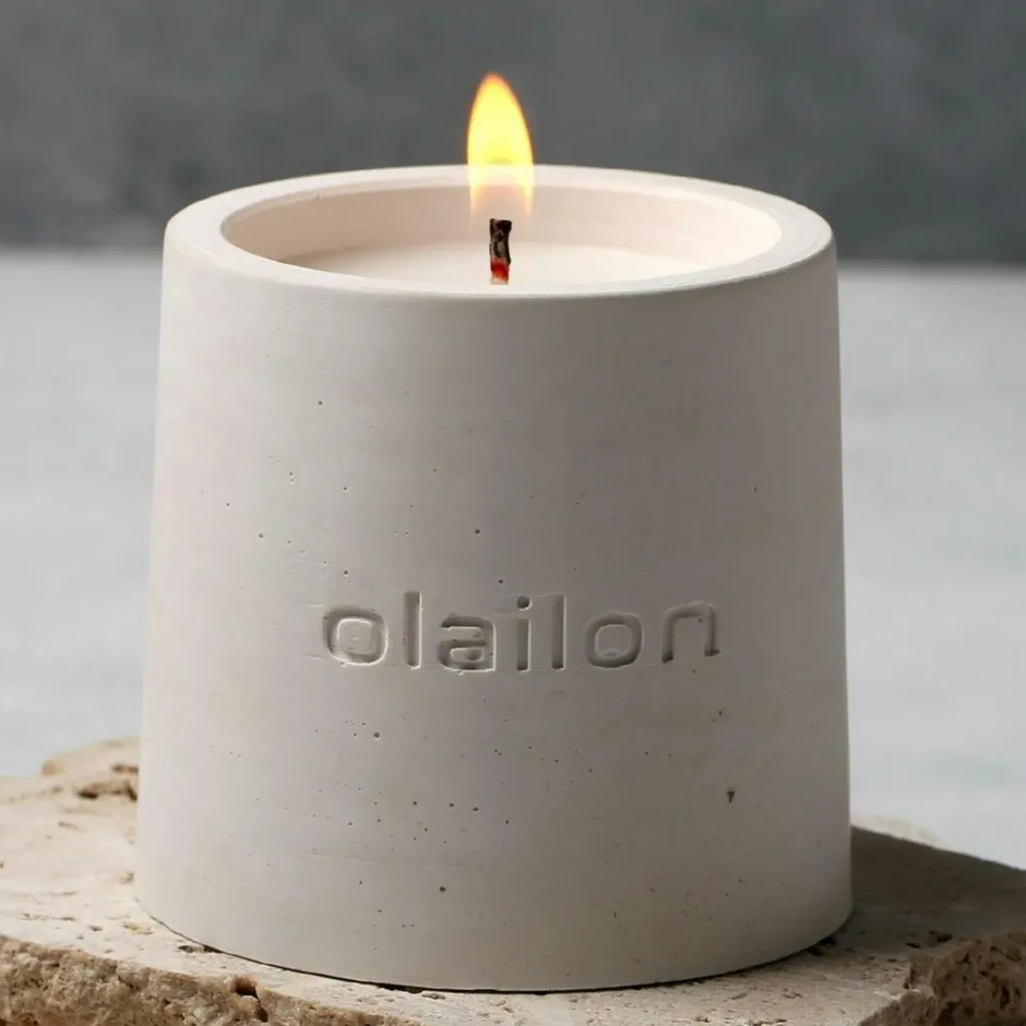 | Composition : | Contenant en béton. Bougie : cire de paraffine et cire de soja. |