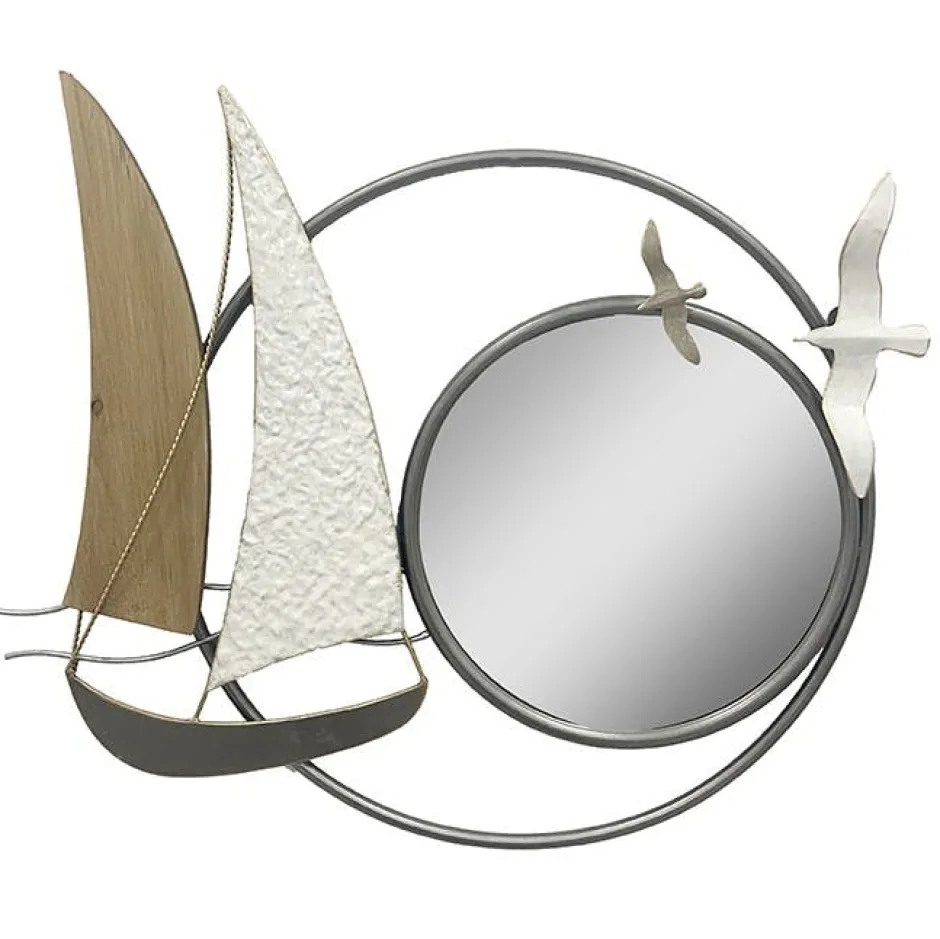 Décorations Murales|Décoration murale en métal avec voiliers en métal blanc et bois