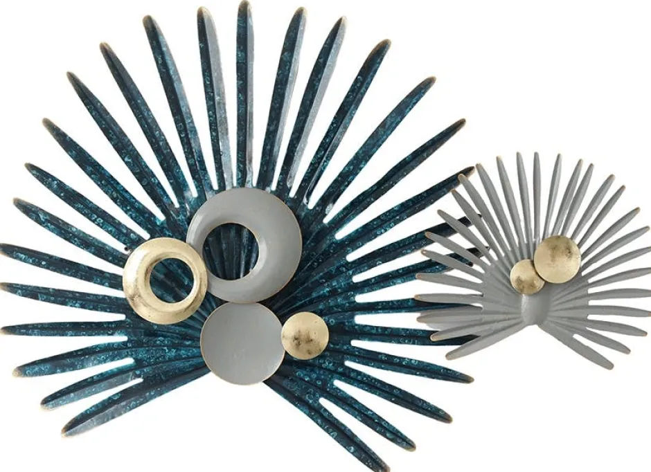 Décorations Murales|Décoration murale en métal feuilles de palmiers bleues et grises