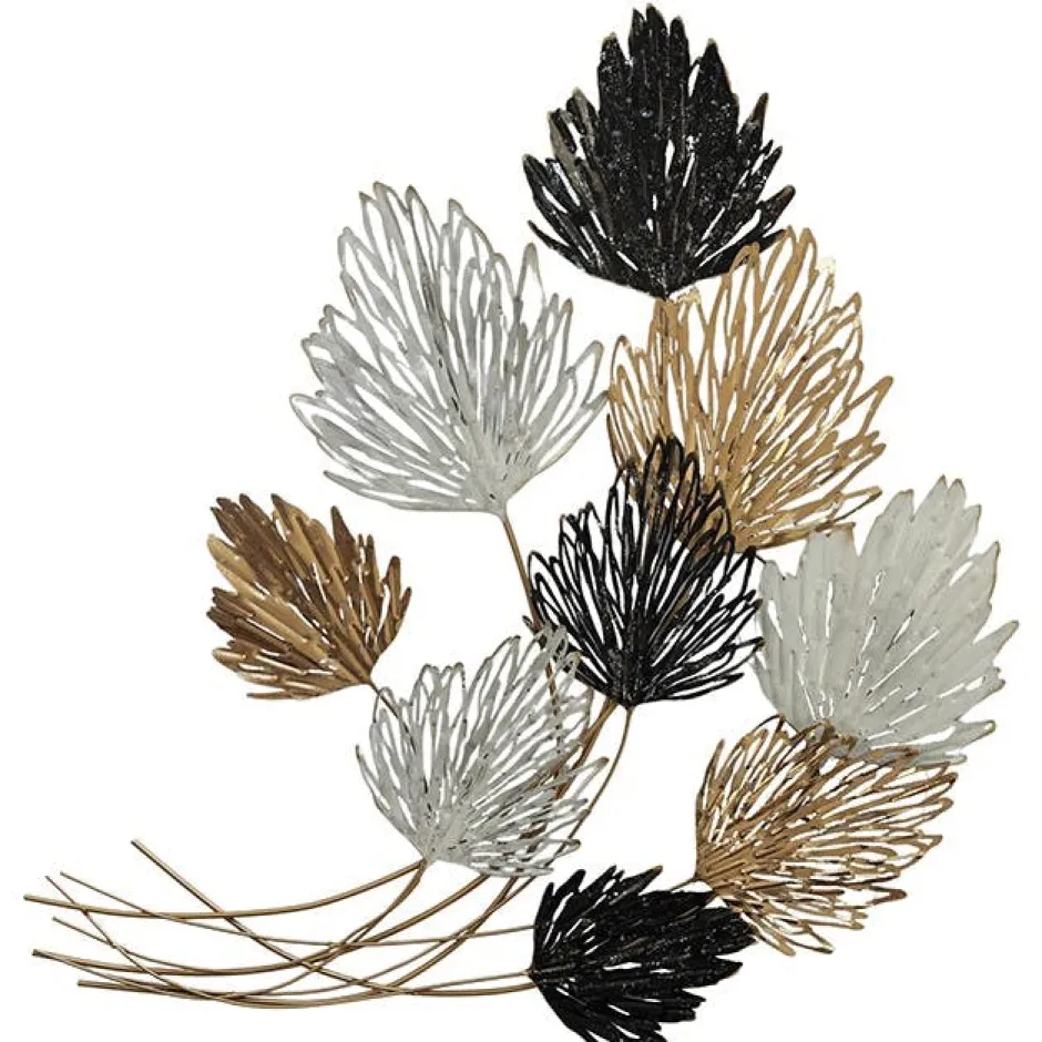 Décorations Murales|Décoration murale en métal feuilles noir, blanc et or