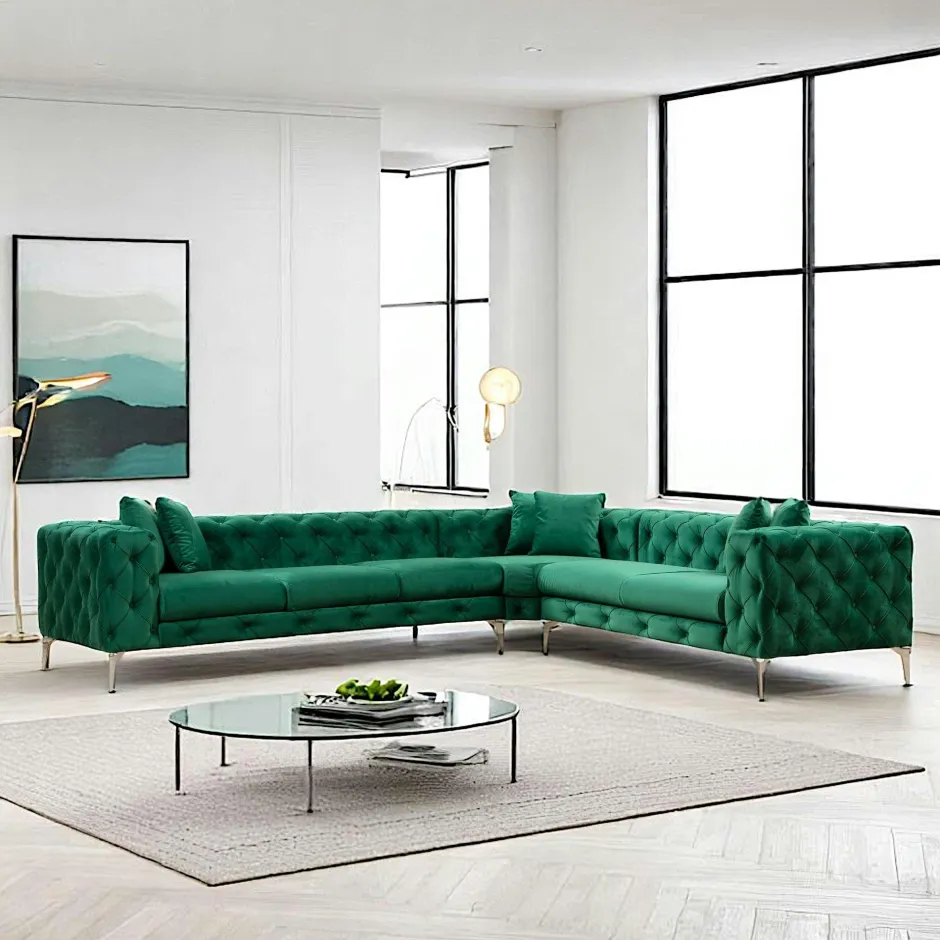 DOVER Canapés En Tissu|Canapés 3 Places|Canapé d’angle vert en velours capitonné – côté droit