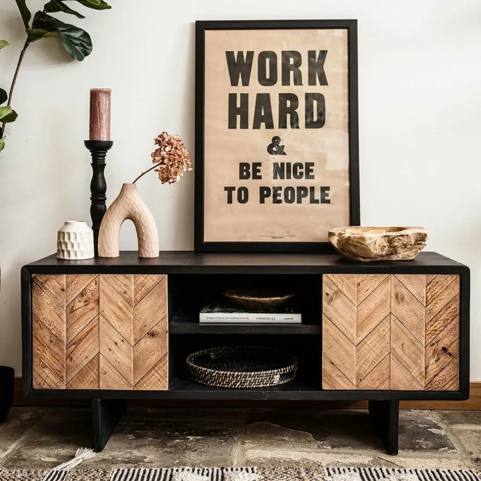 FAGA Meubles Tv En Bois|Meubles Tv Vintage|Meuble tv avec rangement en bois recyclé FSC motif chevron