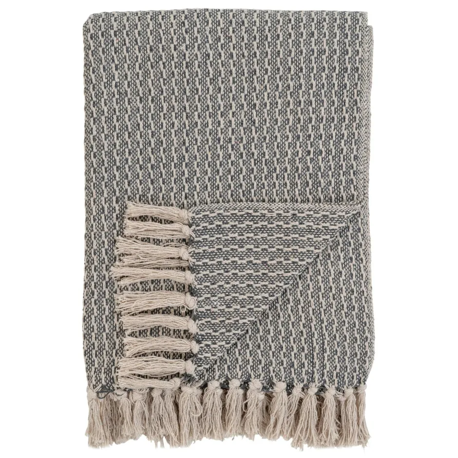 FALLON Textile·Plaids / Jetés|Jeté de canapé gris à losanges – franges, 130×160 cm