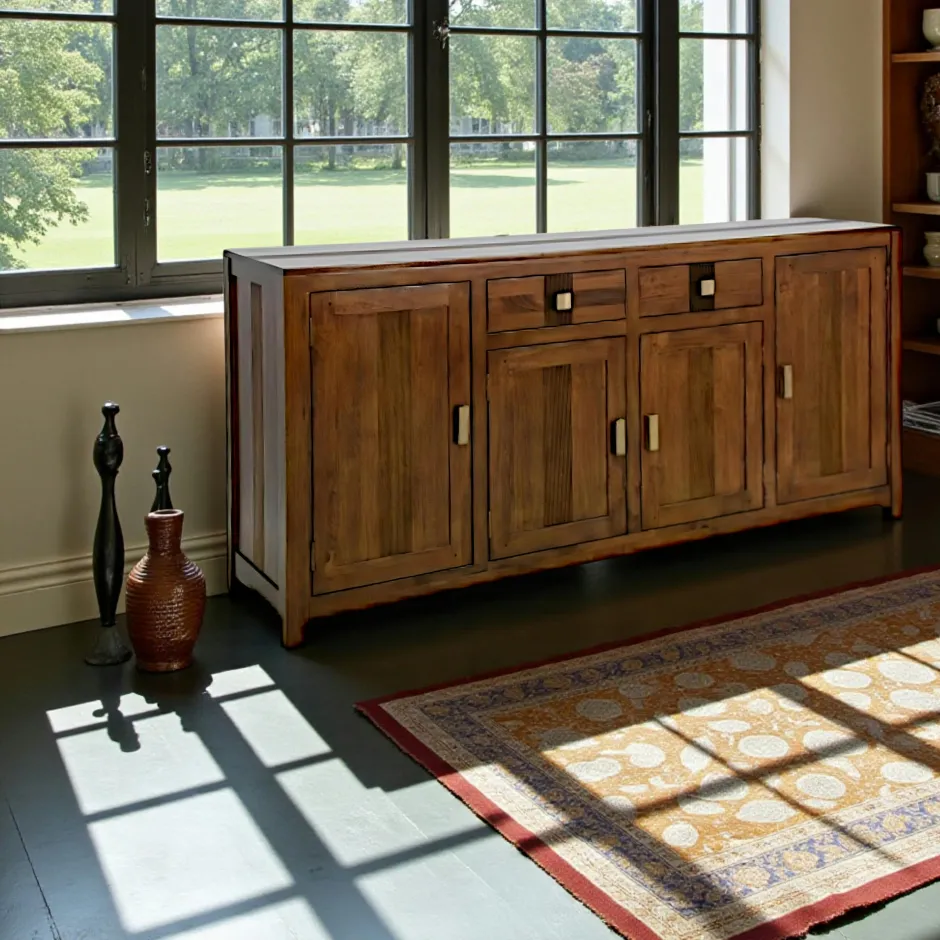Tessa Buffets En Bois|Buffets En Bois|Buffet Enfilade Hévéa 4 portes, 4 tiroirs 200x50x100cm