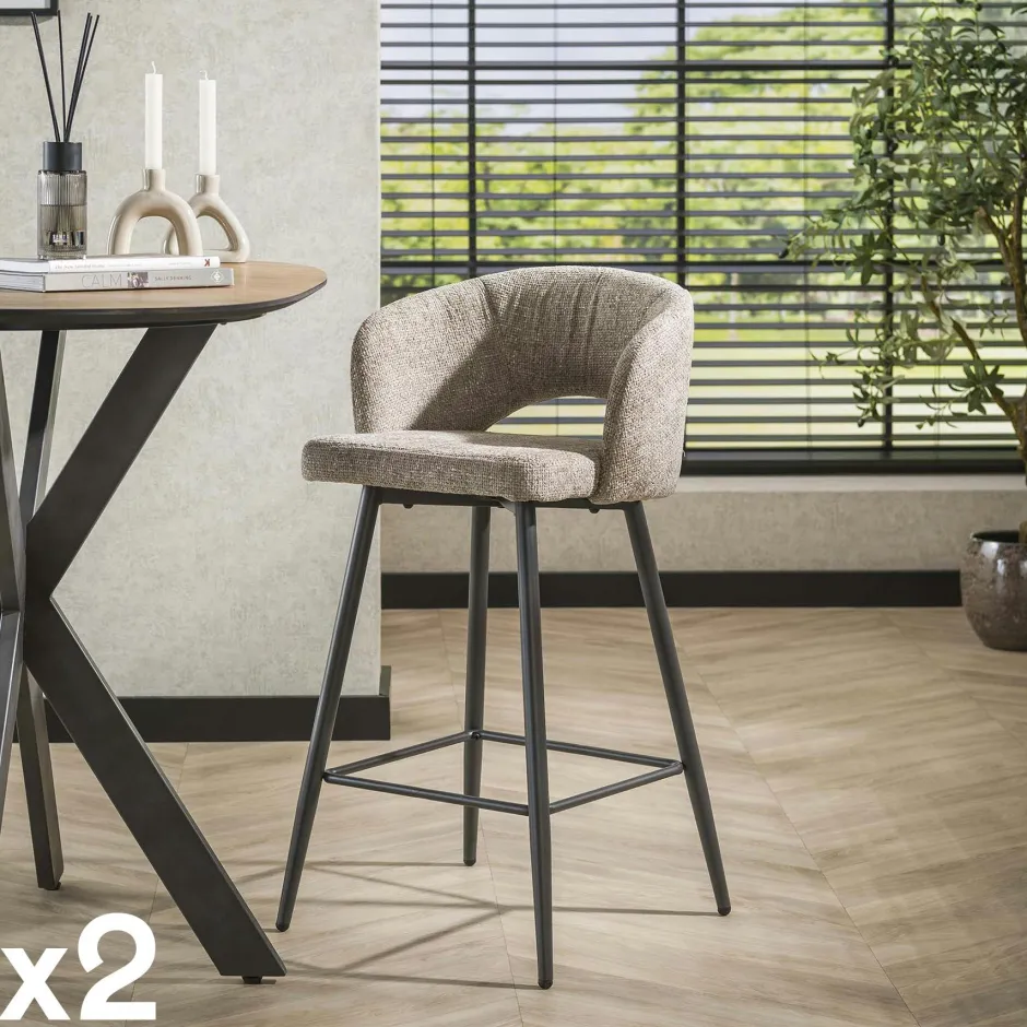 GALWAY Univers Déco·Design Contemporain|Chaises Bouclettes|Tabouret de bar en tissu bouclette gris avec dossier ouvert (lot de 2)