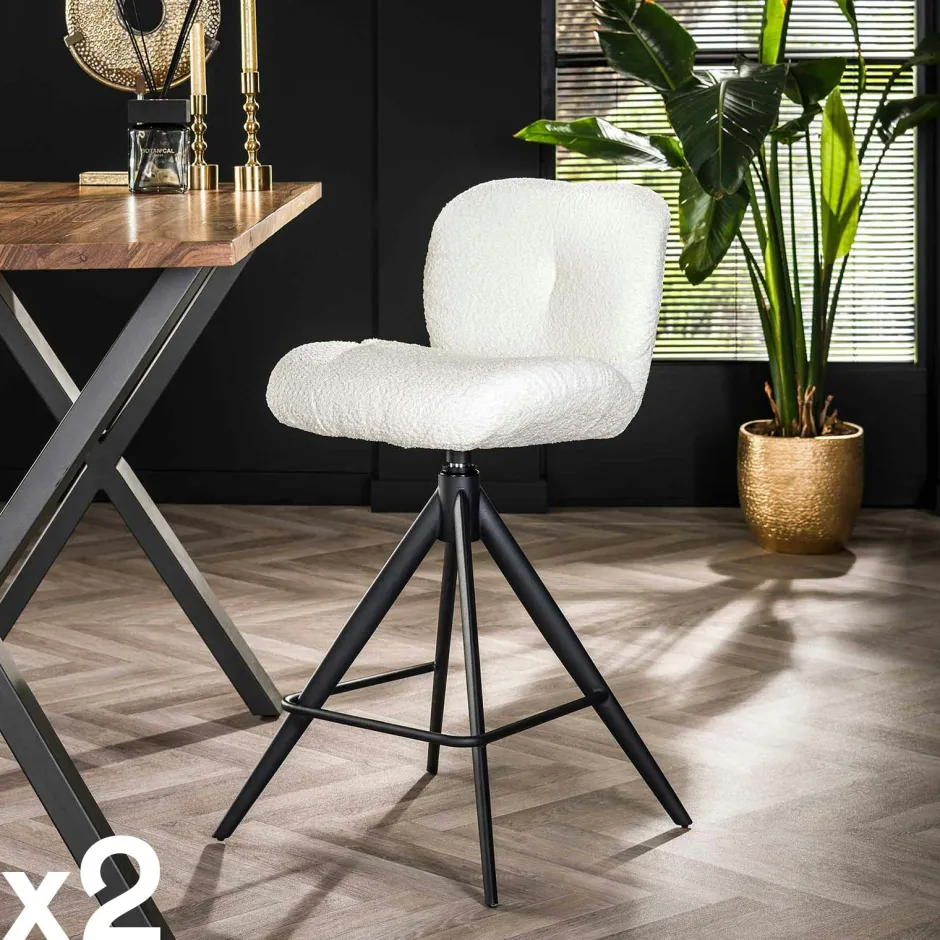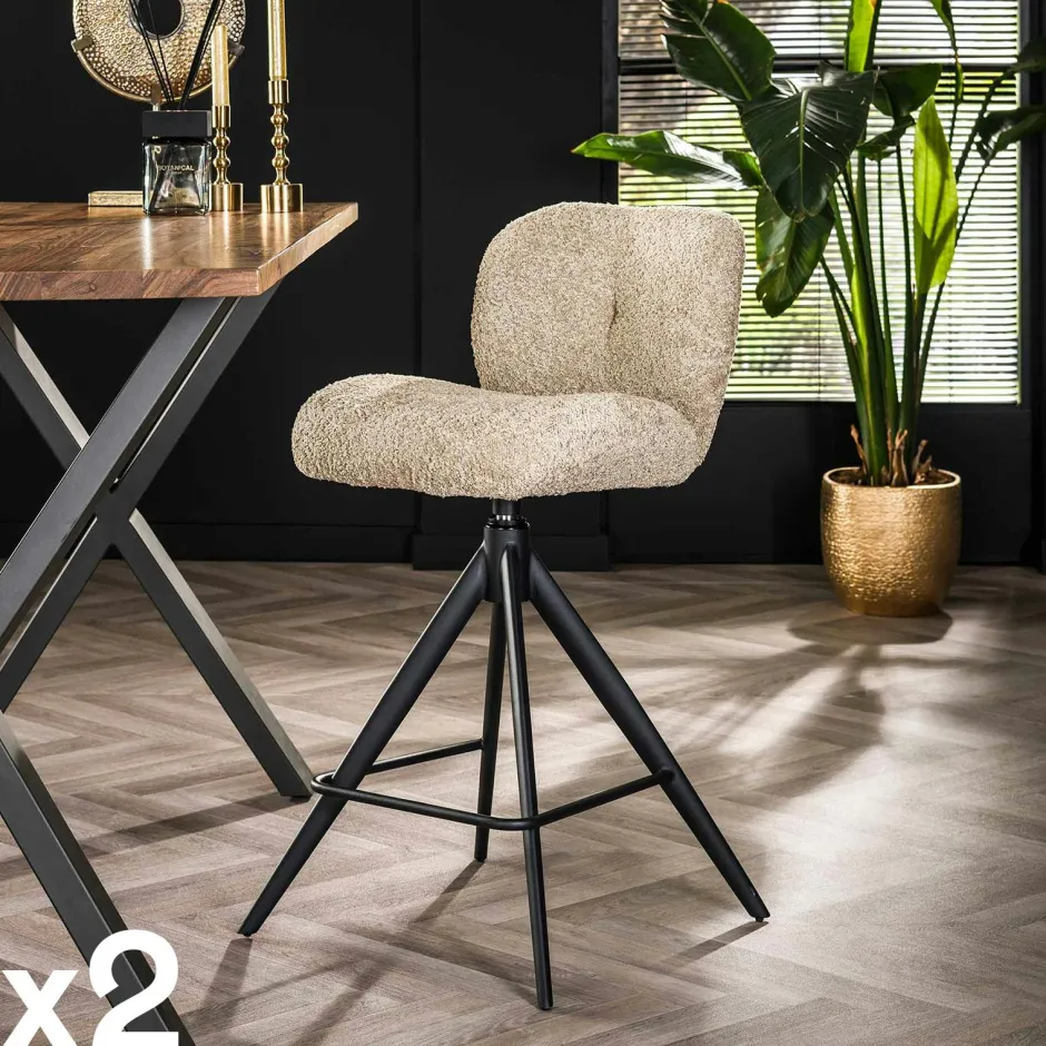 GALWAY Univers Déco·Design Contemporain|Tabouret de bar pivotant en bouclette taupe (lot de 2)