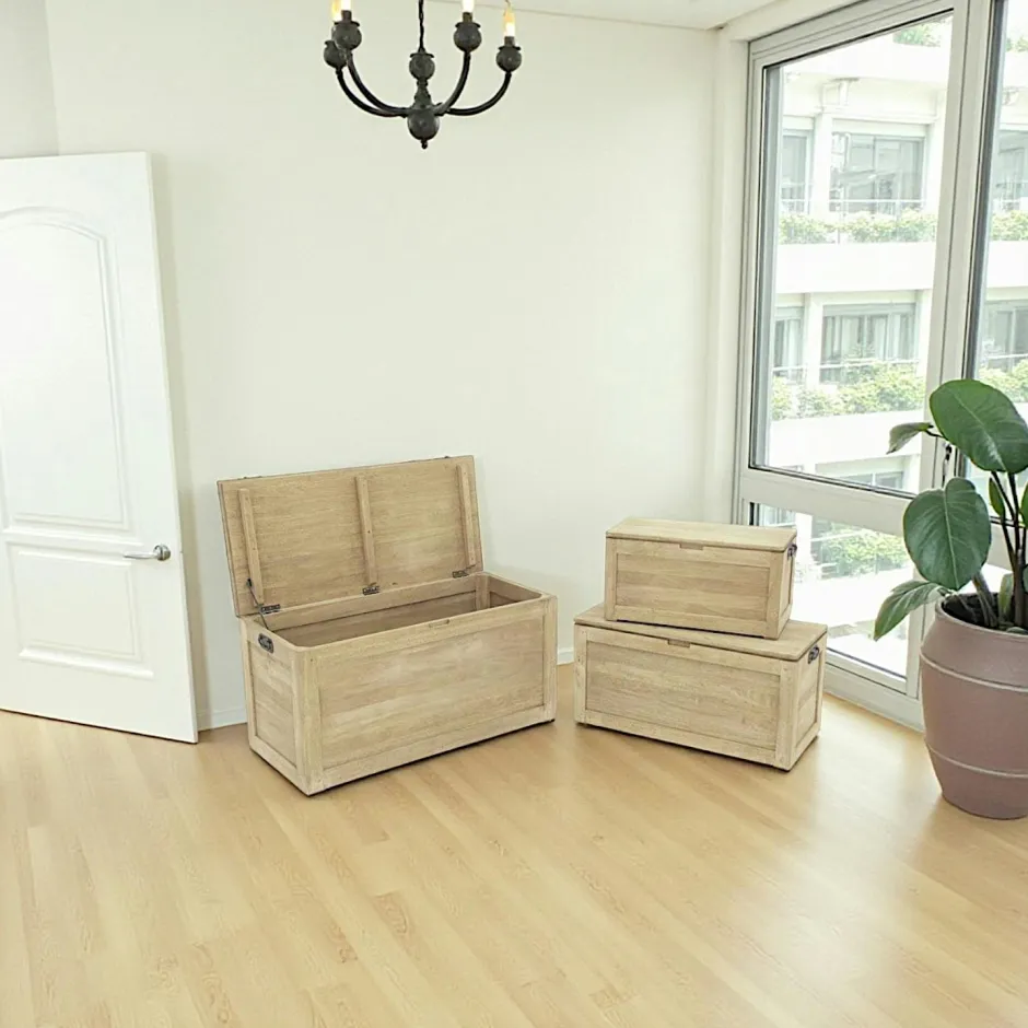 Helena Rangements Déco·Malles|Coffres En Bois|Coffres rectangles (lot de 3) bois massif hévéa