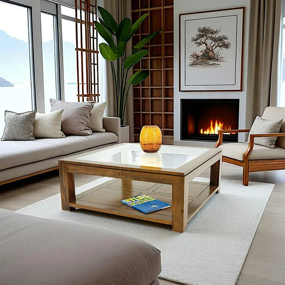 Helena Tables Basses Carrées|Table basse vitrée carrée hévéa 100cm