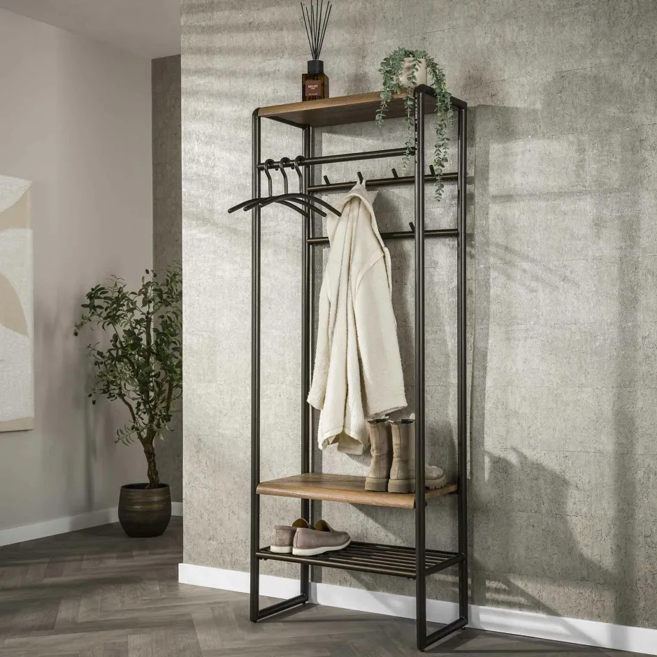 Helsinki Meubles D’Entrée·Portemanteaux|Meubles D’Entrée·Vestiaires|Vestiaire d’entrée effet bois & métal cuivré L70 cm