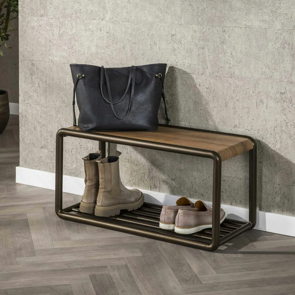 Helsinki Meubles D’Entrée·Vestiaires|Meubles D’Entrée·Vestiaires / Meubles À Chaussures|Banc à chaussures effet bois et métal cuivré