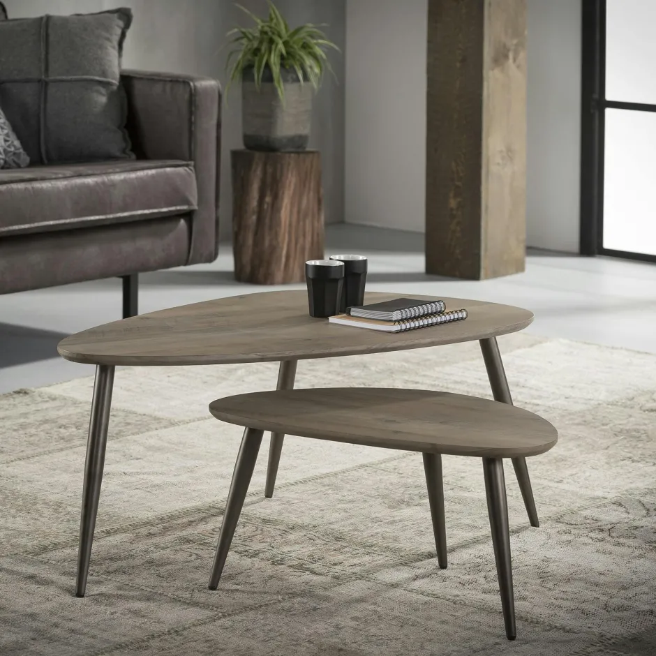 Helsinki Tables Basses Gigognes|Table d’appoint forme galet effet chêne grisé (2 pièces)