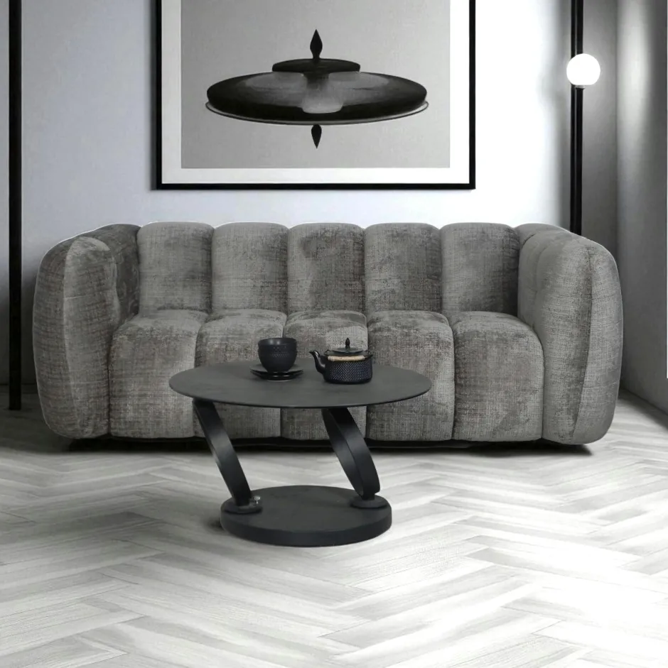 IENA Canapés En Tissu|Canapés 3 Places|Canapé gris 3 places forme arrondie en tissu chenille