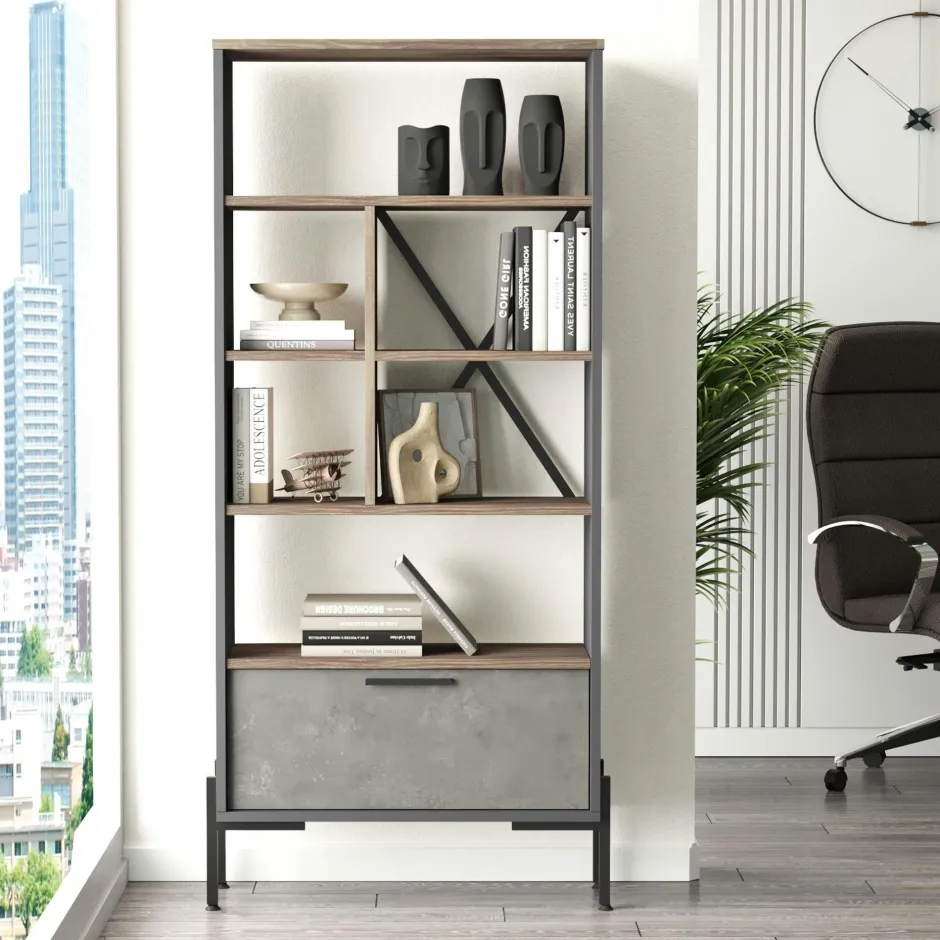 Be the first to review “JENA Bibliothèques En Bois|Bibliothèques En Bois|Bibliothèque industrielle effet bois & métal 1 porte” Annuler la réponse