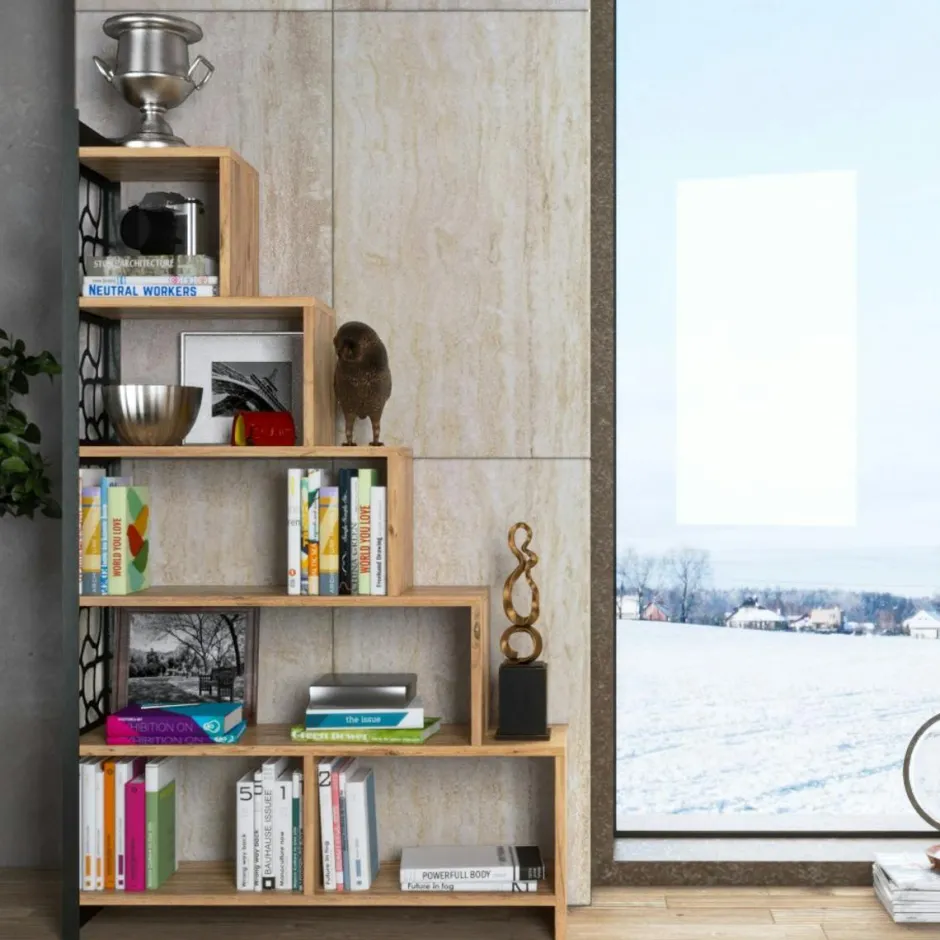 JENA Bibliothèques En Métal|Bibliothèques En Métal|Bibliothèque escalier effet pin, côté métal ajouré