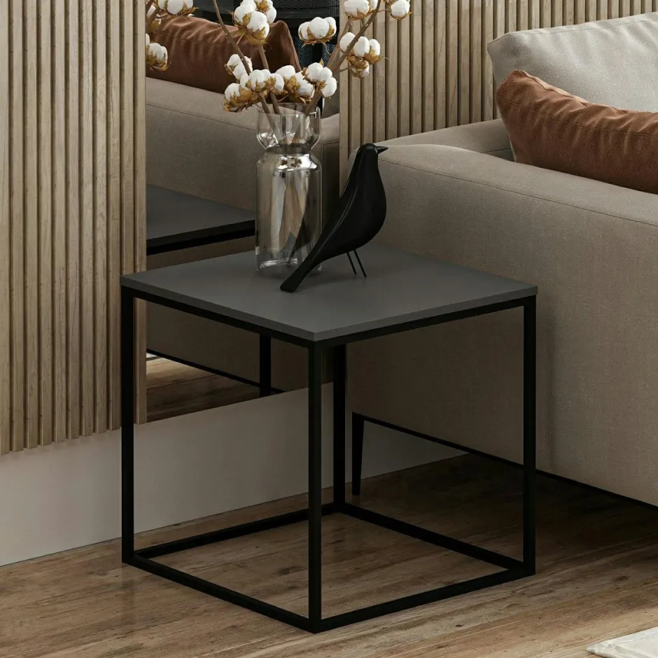 JENA Bouts De Canapé En Métal|Bouts De Canapé En Bois|Bout de canapé cube, plateau gris foncé pieds métal