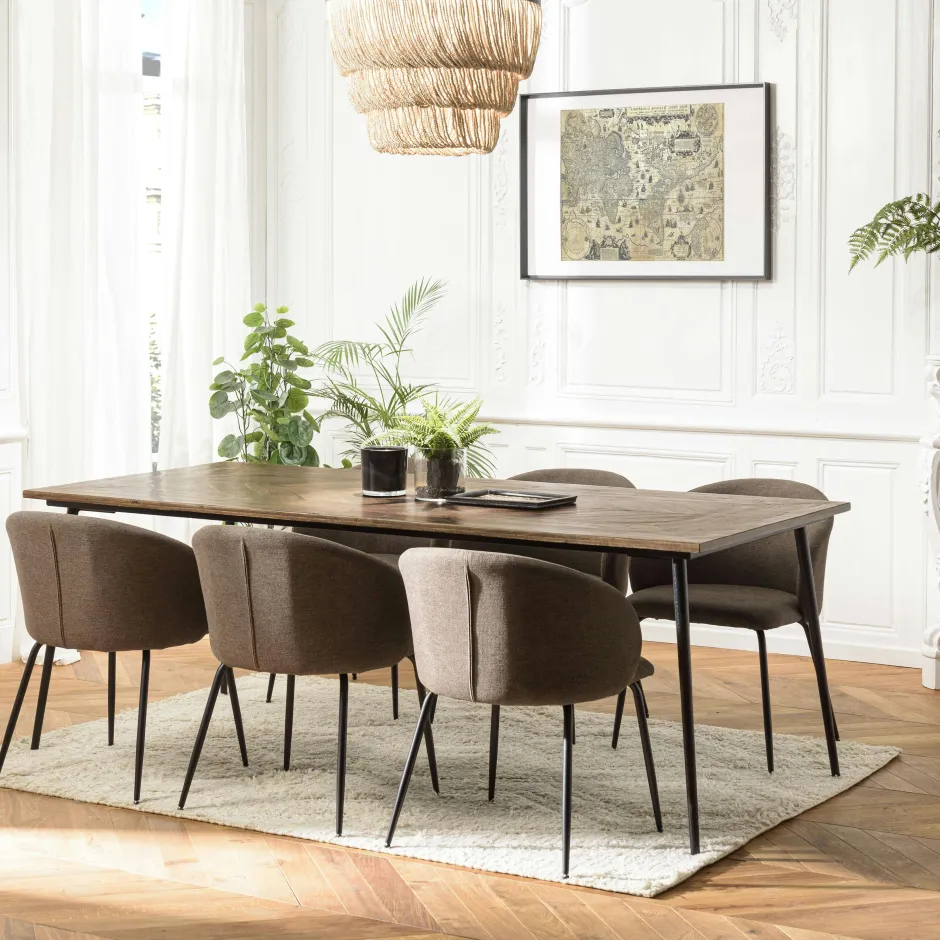KORKAI Tables À Manger En Bois|Tables À Manger Rectangulaires|Table de repas bois recyclé motif épis 220 cm