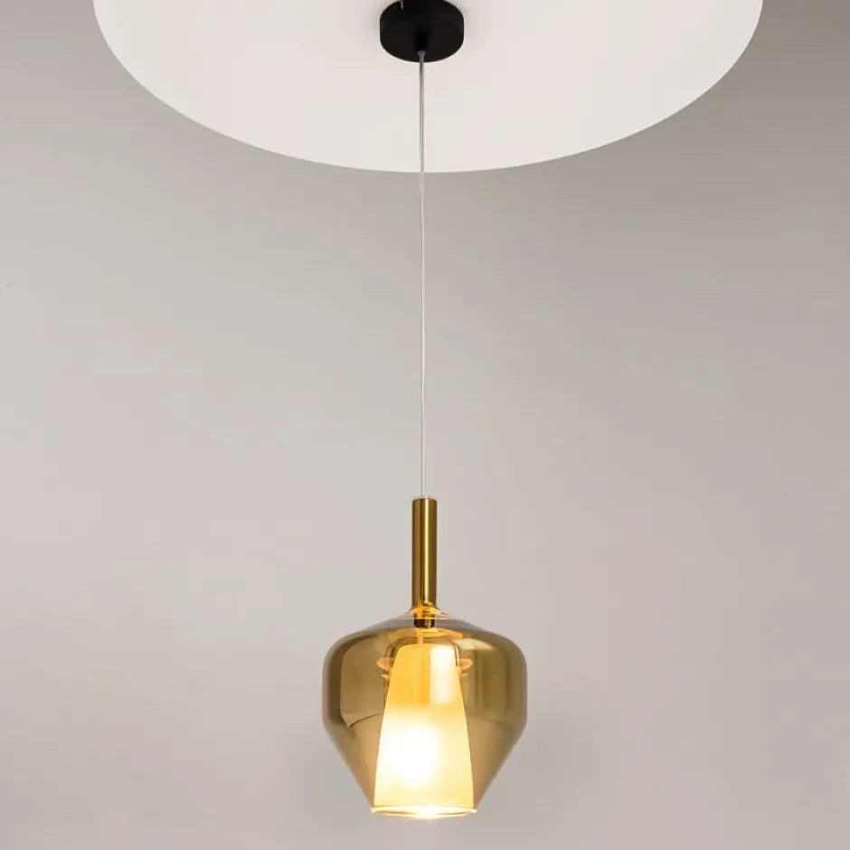 LODI Suspensions / Lustres|Suspension verre doré design – abat-jour double