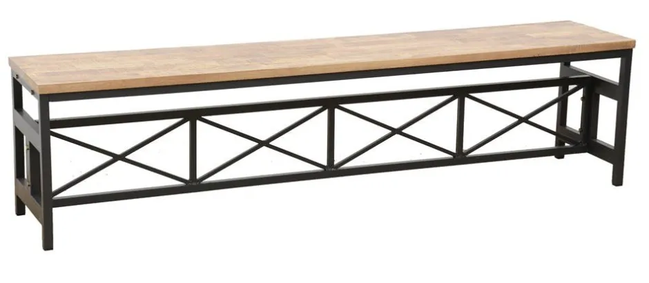 Loft / Loft Colors Bancs Industriels|Banc en Hévéa recyclé naturel et pieds métal avec croisillons 180x36x45cm LOFT