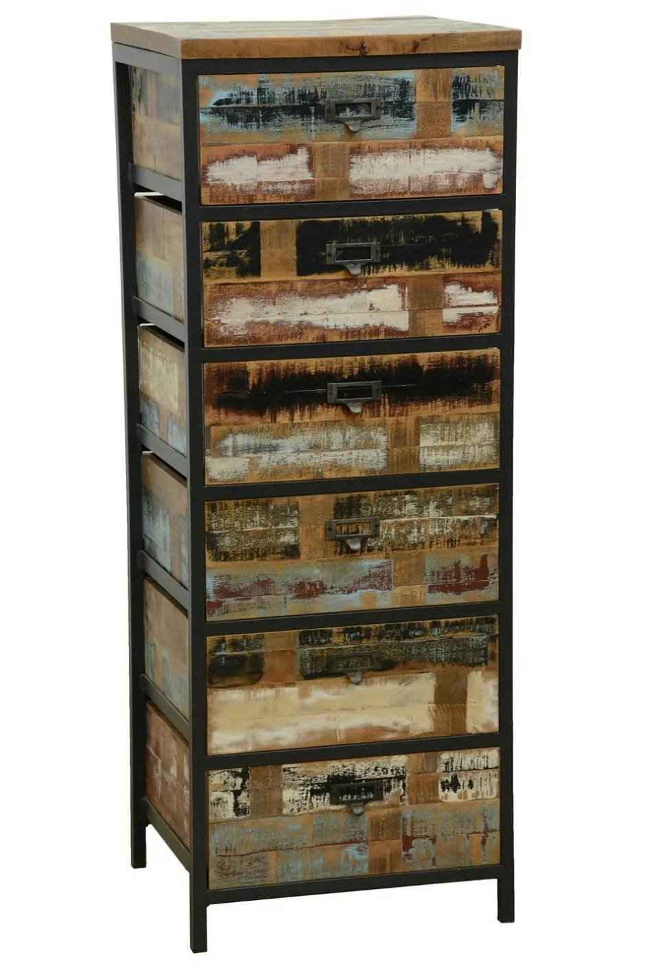 Loft / Loft Colors Chiffonnier Industriel|Chiffonnier 6 tiroirs en Hévéa recyclé coloré et métal 45x40x120cm LOFT COLORS