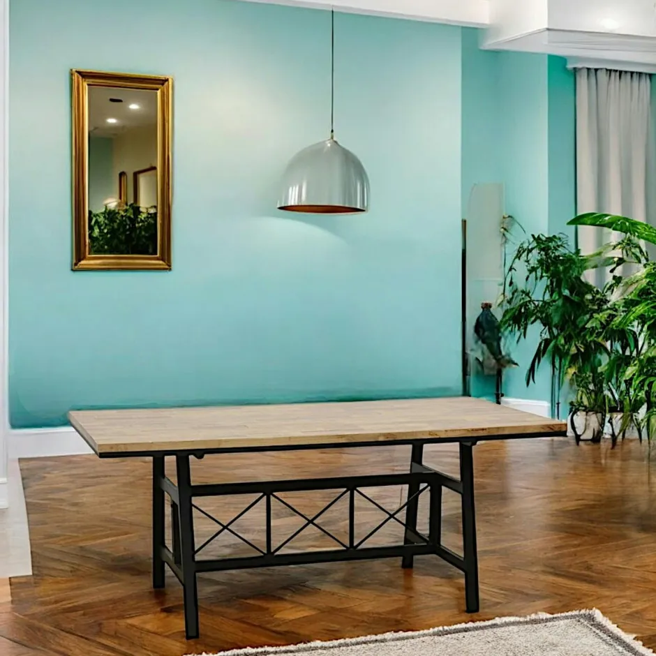 Loft / Loft Colors Tables À Manger Industrielles|Tables À Manger Rectangulaires|Table de Repas plateau en Hévéa recyclé naturel et pieds métal avec croisillons 180x90x76cm LOFT