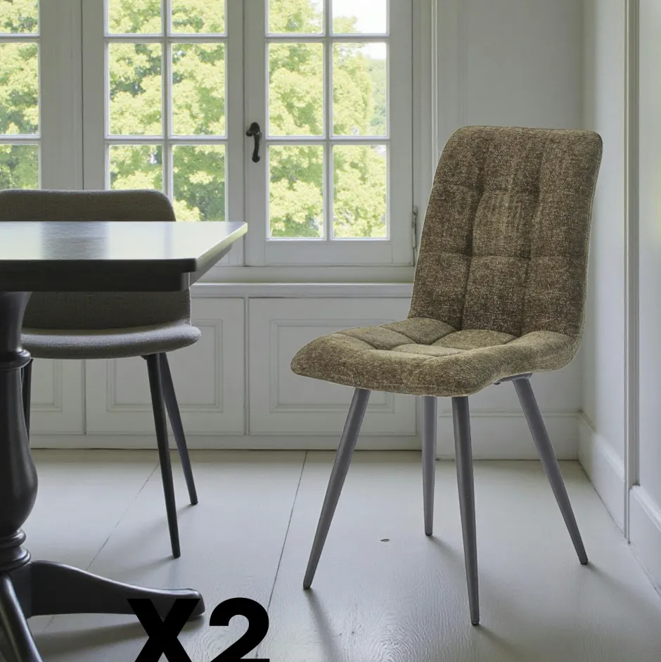 LOMBARDIE Chaises Contemporaines|Meubles De Cuisine·Chaises|Chaise en tissu écru motif damier (lot de 2)
