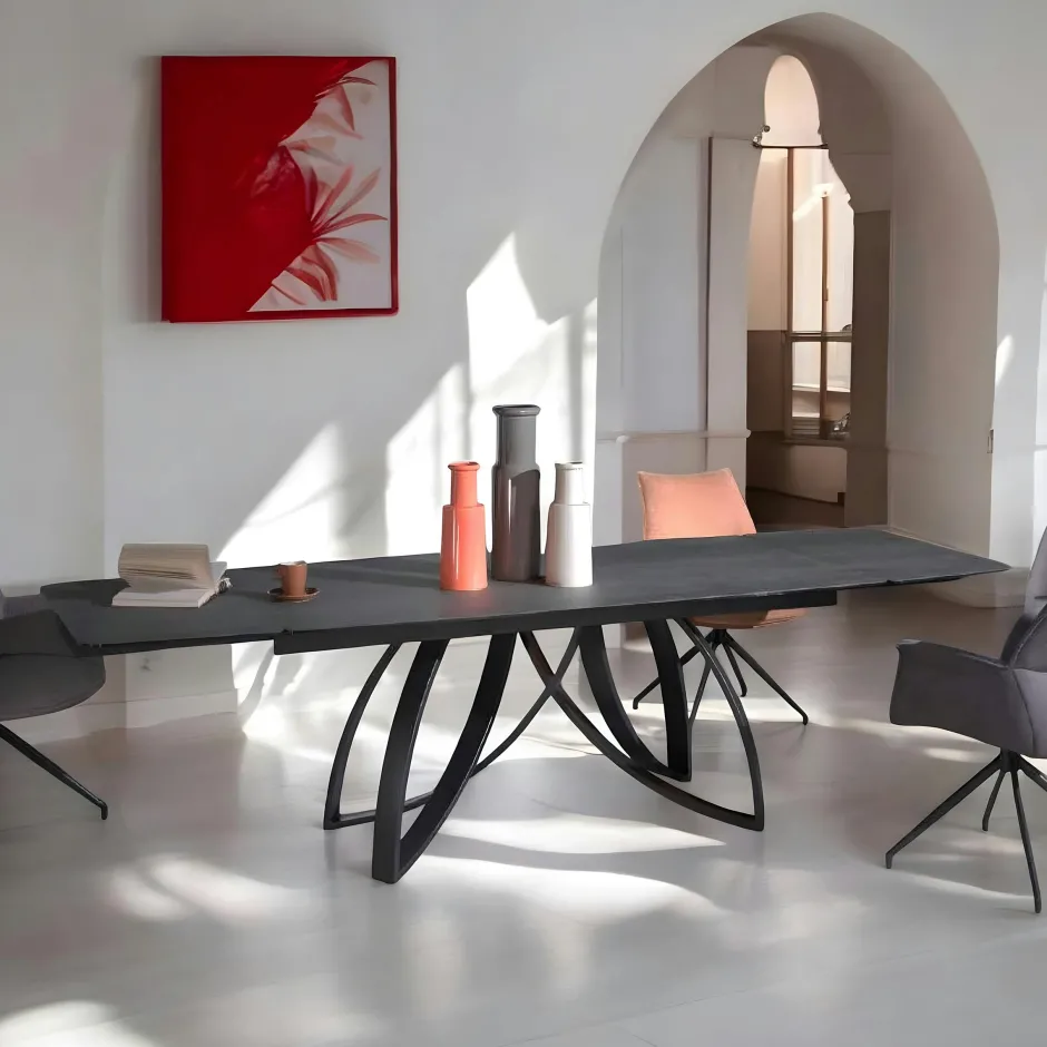 LOMBARDIE Tables À Manger Rectangulaires|Tables À Manger En Céramique|Table en céramique grise avec pied lotus 180-280 cm