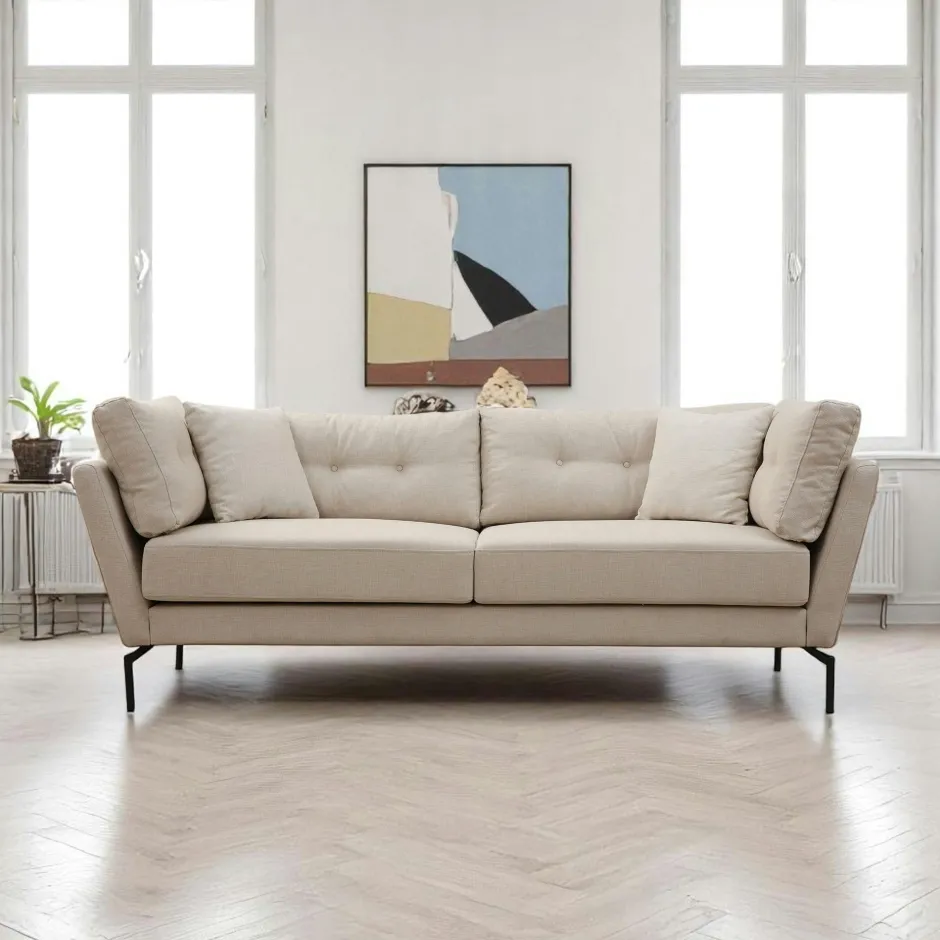 LUCCA Canapés 3 Places|Canapés En Tissu|Canapé 3 places beige – accoudoirs inclinés