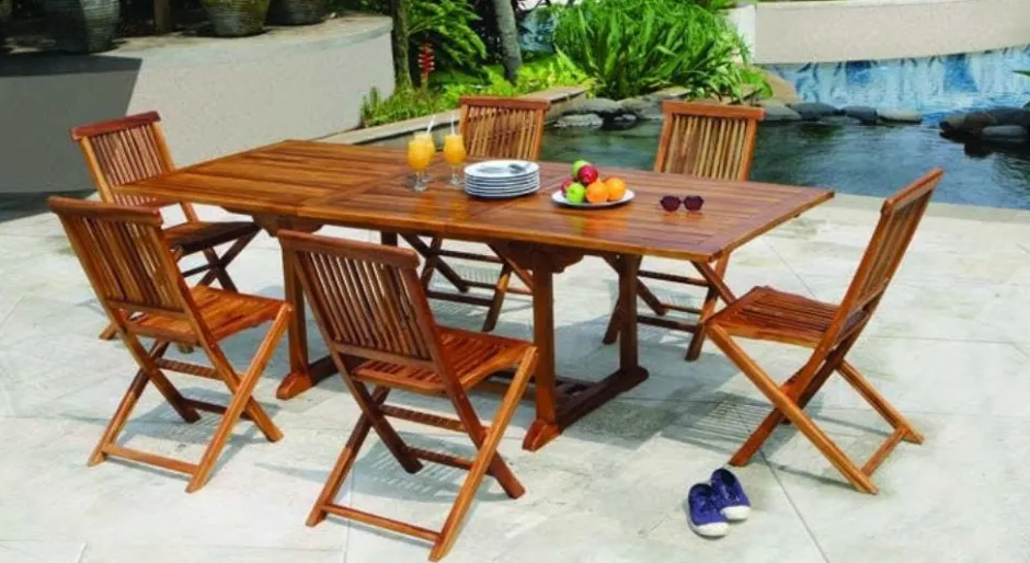 | Informations particulières : | Table de longueur 180cm extensible avec une allonge centrale papillon de 60cm – Trou prévu pour un parasol – Dimensions chaise : long45.5xlarg60xht90cm – Finition : Huilé – Meuble livré monté, pieds à visser |