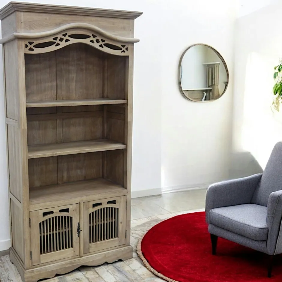 Maori Bibliothèques En Bois|Bibliothèques En Bois|Bibliothèque ouverte Hévéa 2 portes, 3 niches étagères 96.6×44.8x195cm