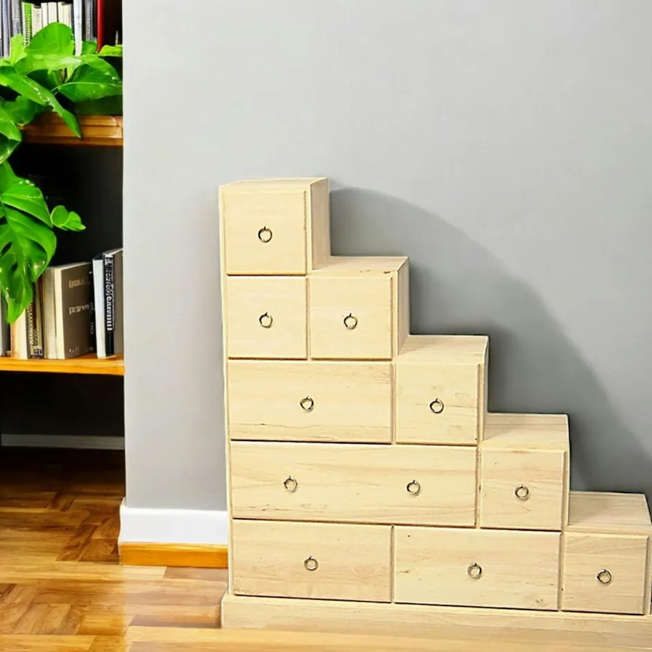 Maori Bibliothèques En Bois|Bibliothèques En Bois|Meuble Escalier « côté droit » Hévéa 10 tiroirs 98x30x102cm