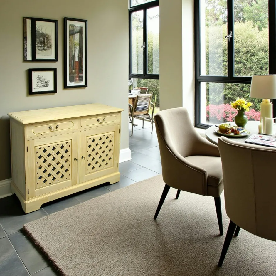 Maori Buffets En Bois|Buffets En Bois|Buffet Hévéa 2 tiroirs, 2 portes motif tressé 120x40x90cm