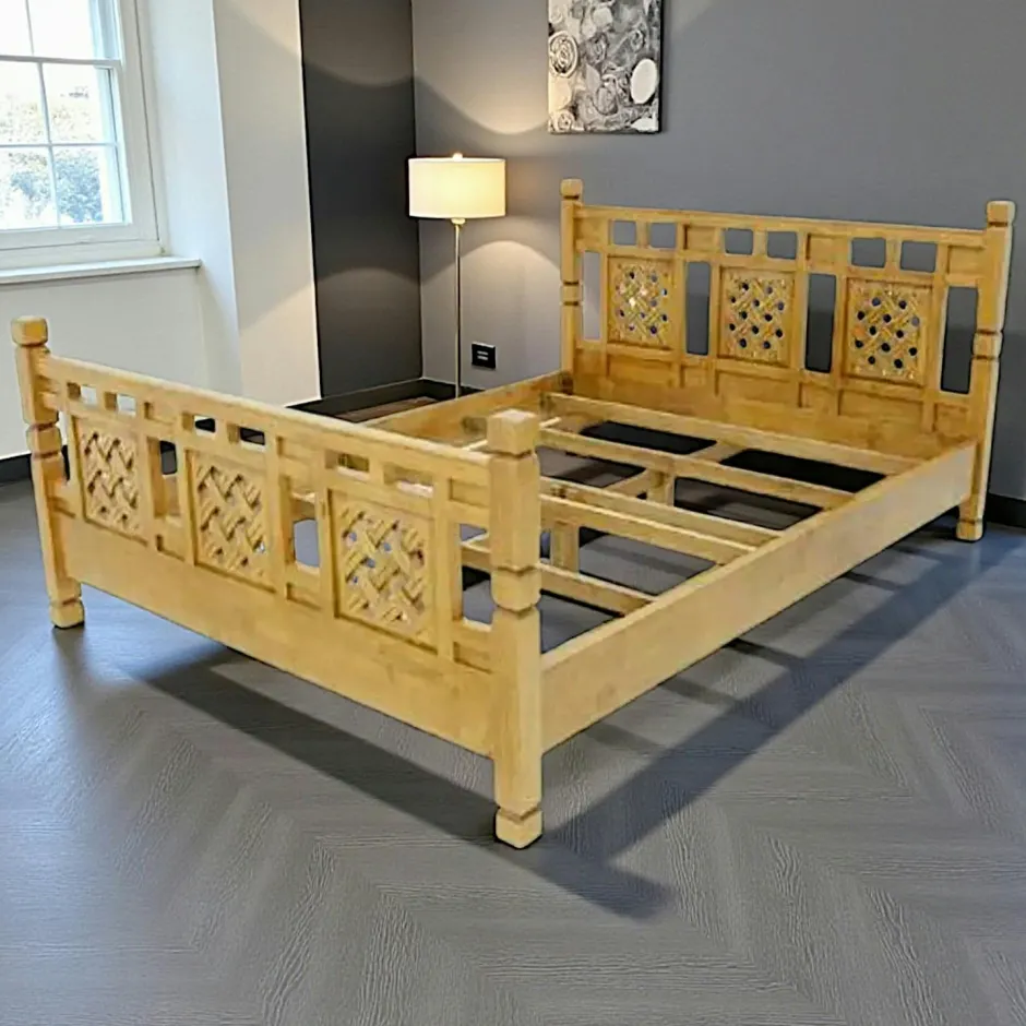 Maori Lits 2 Places|Lit 2 places Hévéa pour couchage 180x200cm motifs tressés 213x193x95cm TRADITION