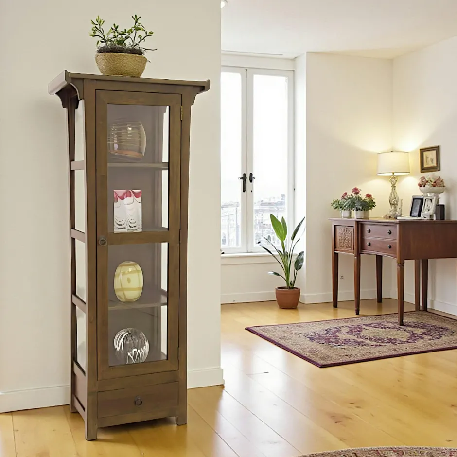 Maori Vaisseliers En Bois|Vaisseliers En Bois|Vitrine Hévéa 1 porte vitrée, 1 tiroir 70x38x170cm