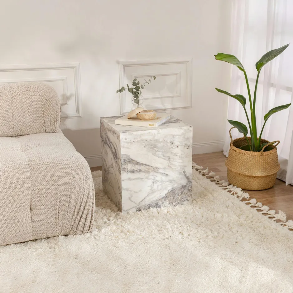 MARFA Bouts De Canapé En Bois|Bout de canapé cube effet marbre blanc – style design