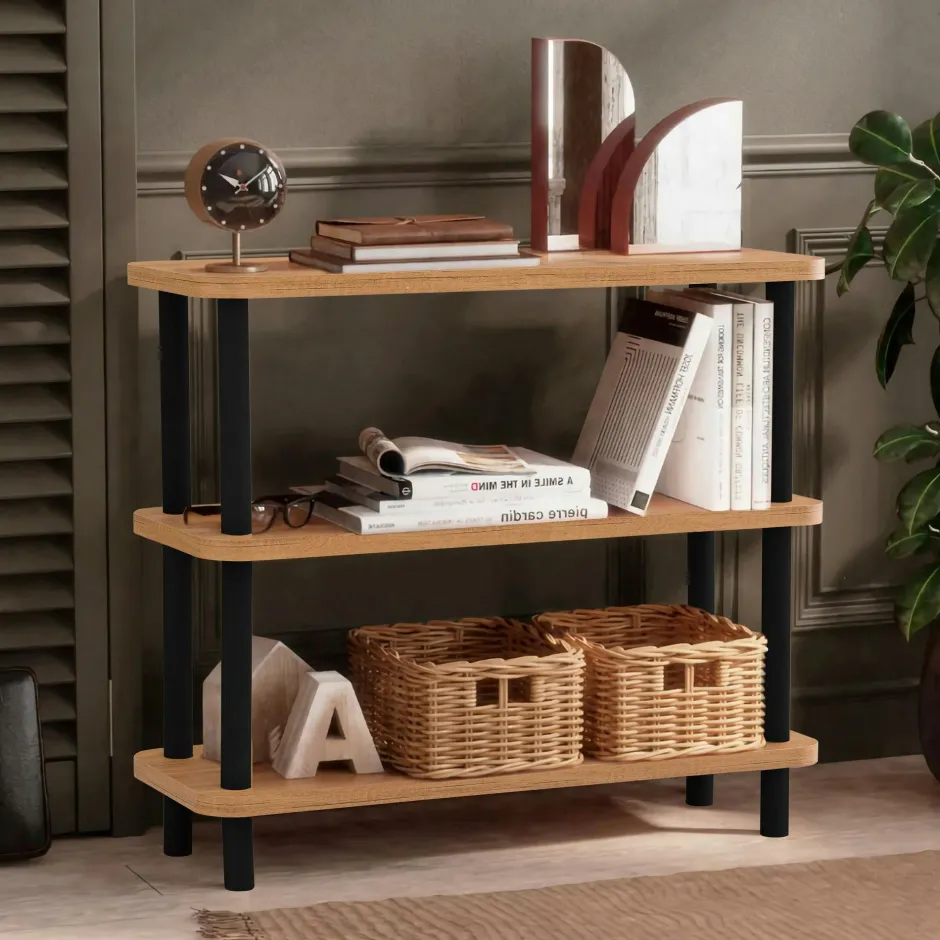 MARFA Consoles En Bois|Consoles En Bois|Bibliothèque basse structure noire – 3 niveaux