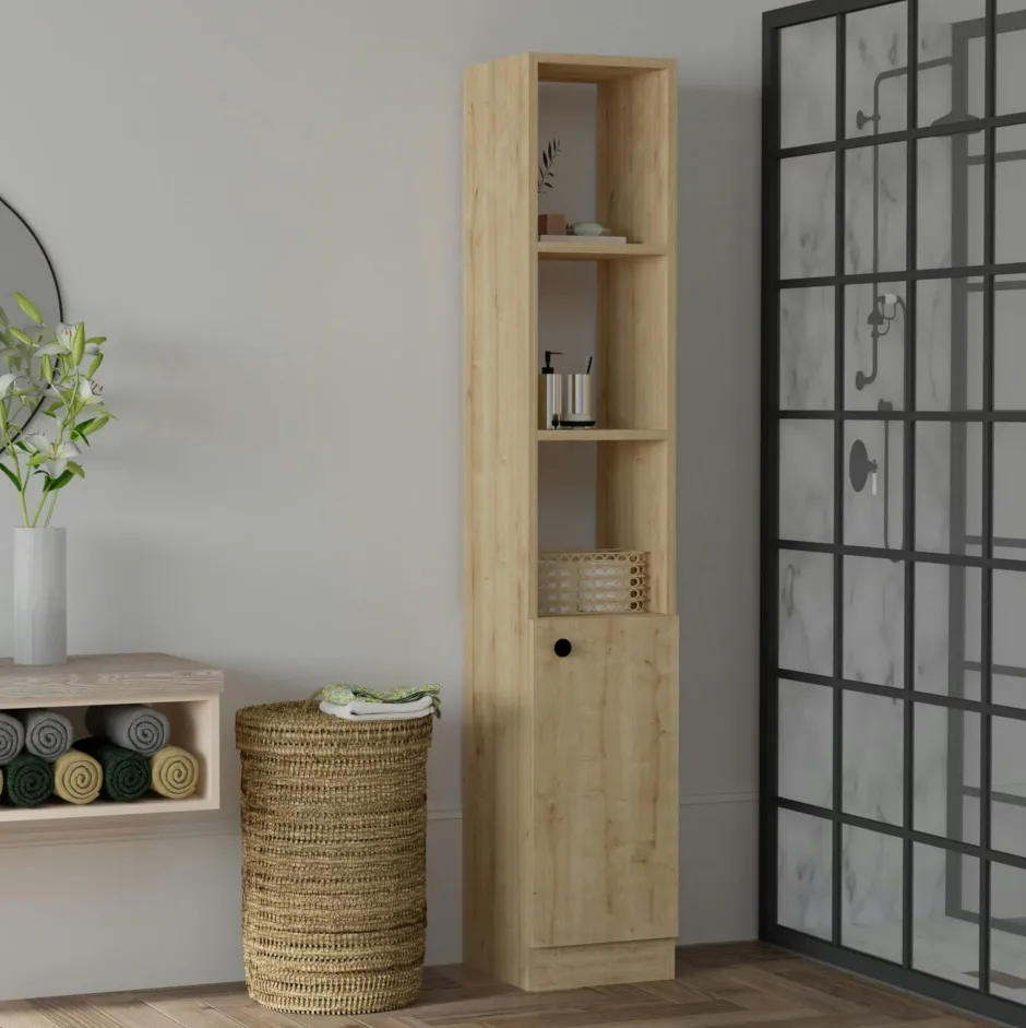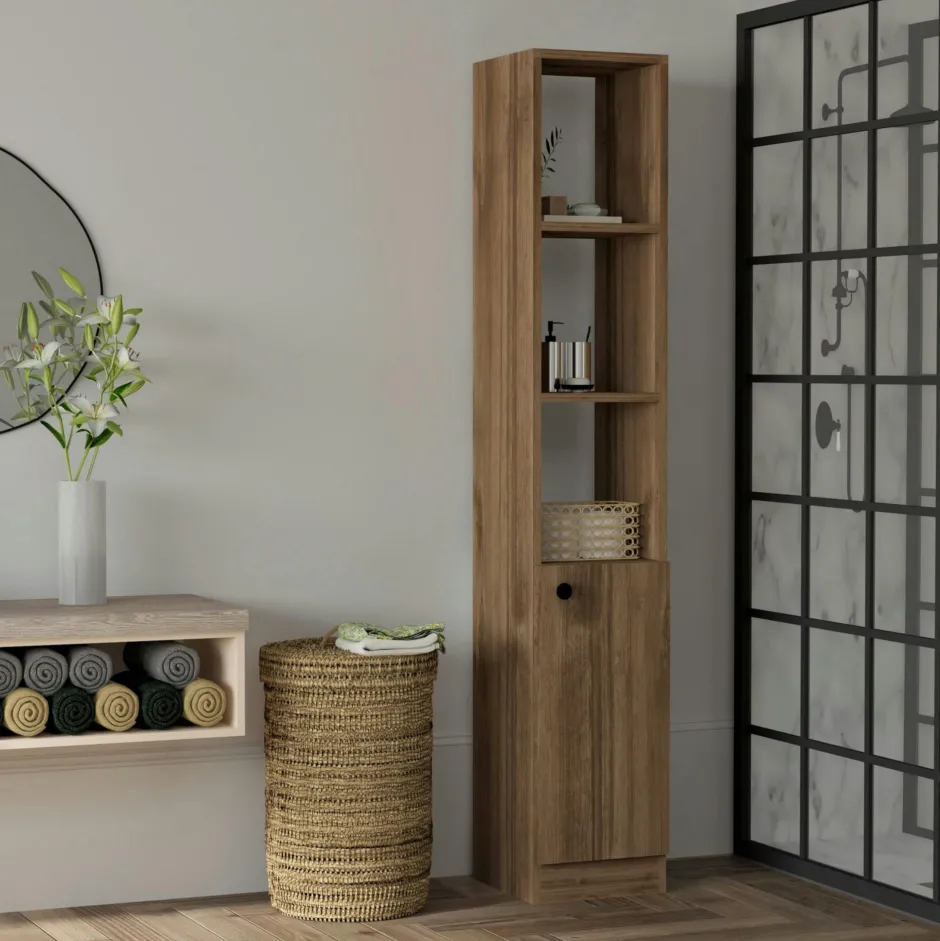 MARFA Meubles De Salle De Bains·Rangement Salle De Bains|Colonne salle de bains effet noyer, 1 porte 3 niches