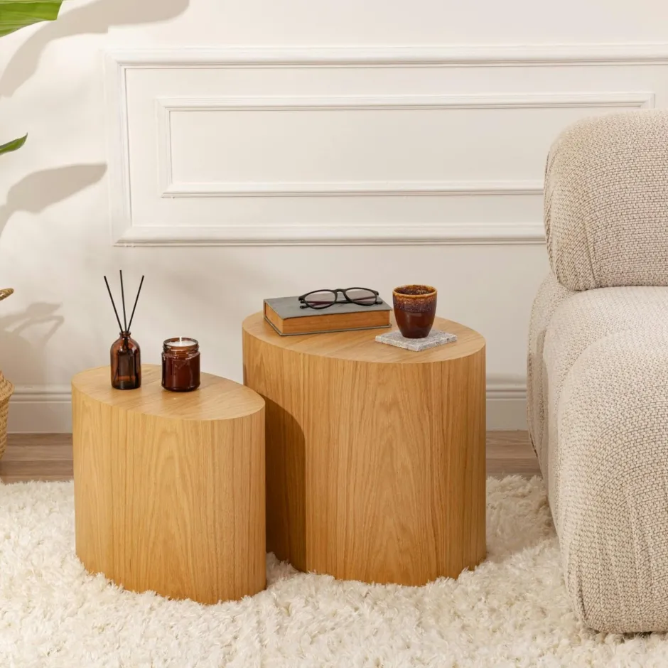 MARFA Tables Basses Gigognes|Bout de canapé design effet bois – forme ovale (2 pièces)
